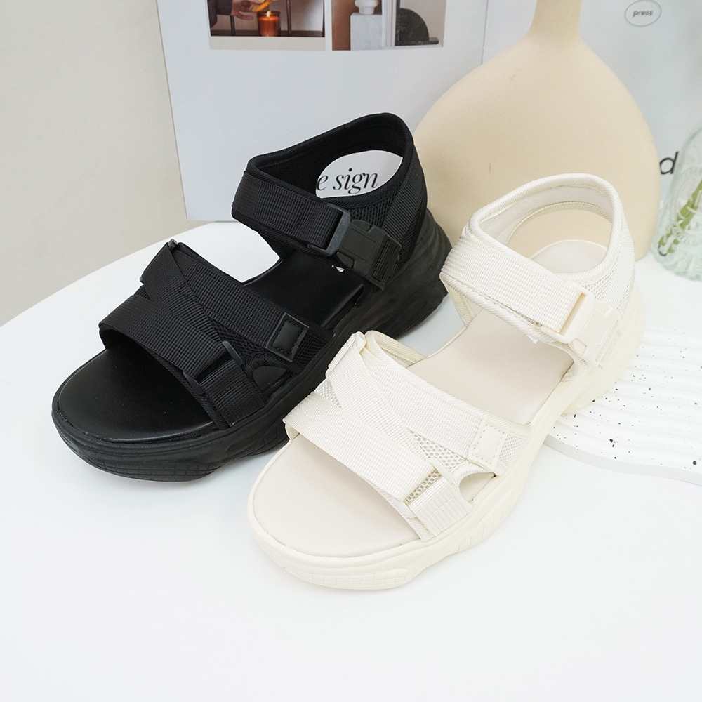 Material瑪特麗歐 T6802 一般碼23-25(另有加大碼) 女鞋 涼鞋 MIT布面側壓扣厚底涼鞋黑色23|黑色23.5|黑色24|黑色24.5|黑色25|米色23|米色23.5|米色24|米色24.5|米色25Flat SandalsMaterial 瑪特麗歐 台灣製女鞋品牌 旗艦店