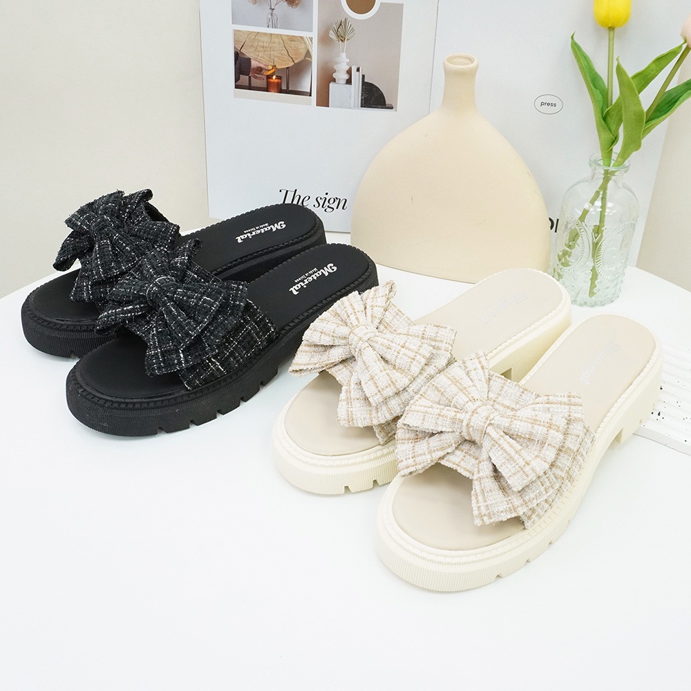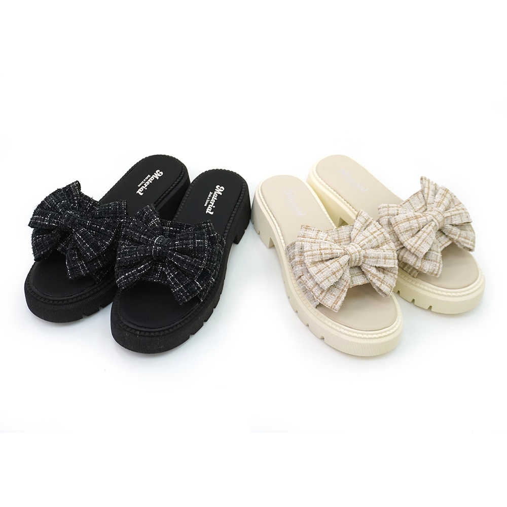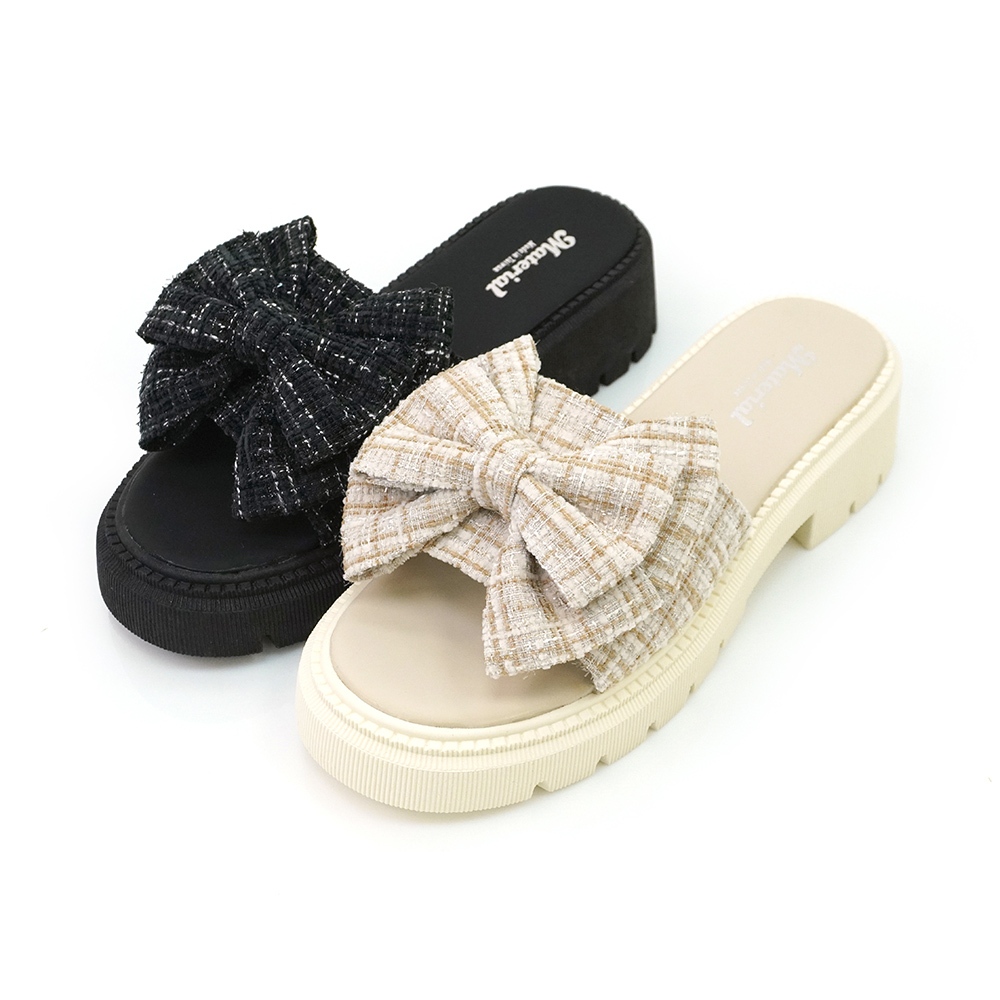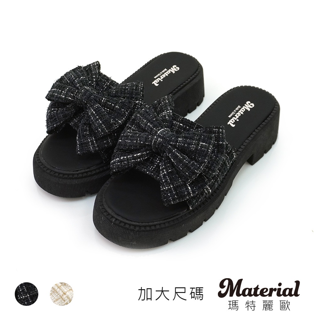 Material瑪特麗歐 TG53371 【加大尺碼25.5-27】 女鞋 拖鞋 MIT加大尺碼可愛蝴蝶結拖鞋黑色25.5|黑色26|黑色26.5|黑色27|米色25.5|米色26|米色26.5|米色27Flat SandalsMaterial 瑪特麗歐 台灣製女鞋品牌 旗艦店