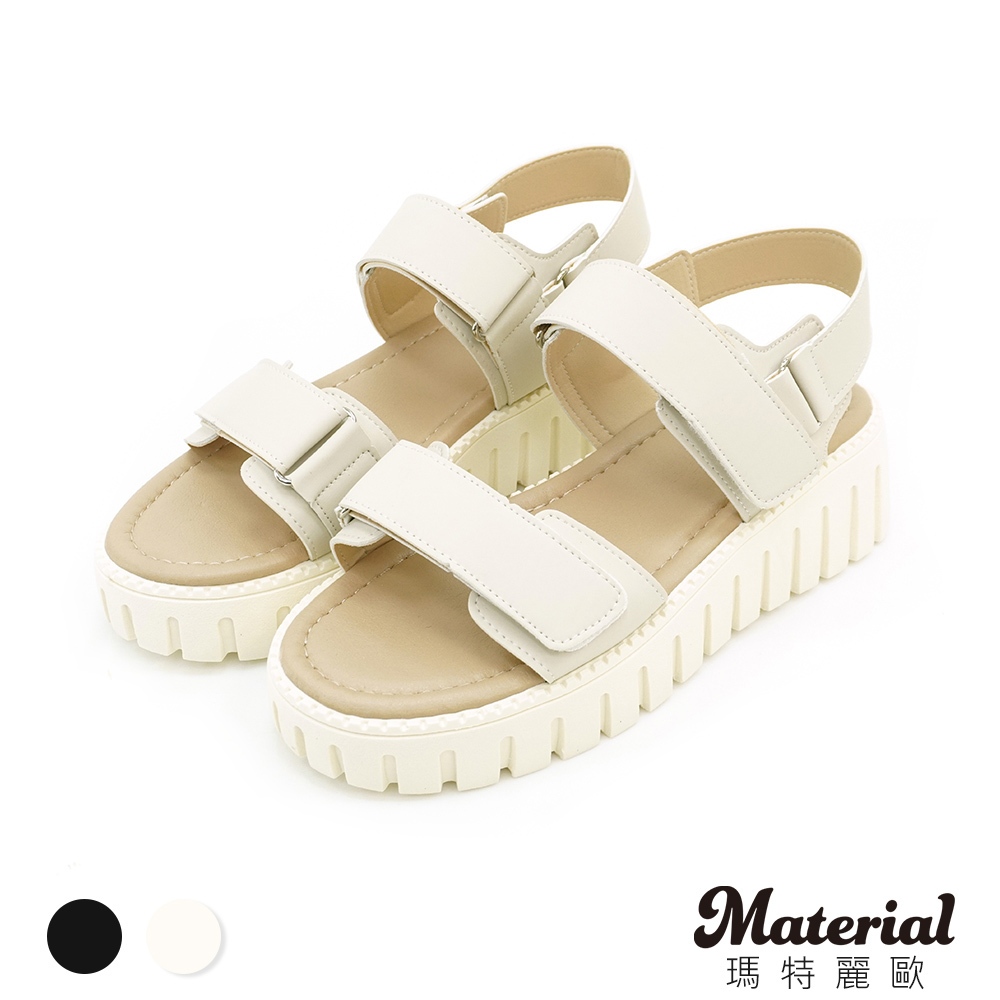 Material瑪特麗歐 T53389 【23-25】 女鞋 涼鞋 MIT簡約雙帶厚底涼鞋黑色23|黑色23.5|黑色24|黑色24.5|黑色25|米色23|米色23.5|米色24|米色24.5|米色25Flat SandalsMaterial 瑪特麗歐 台灣製女鞋品牌 旗艦店
