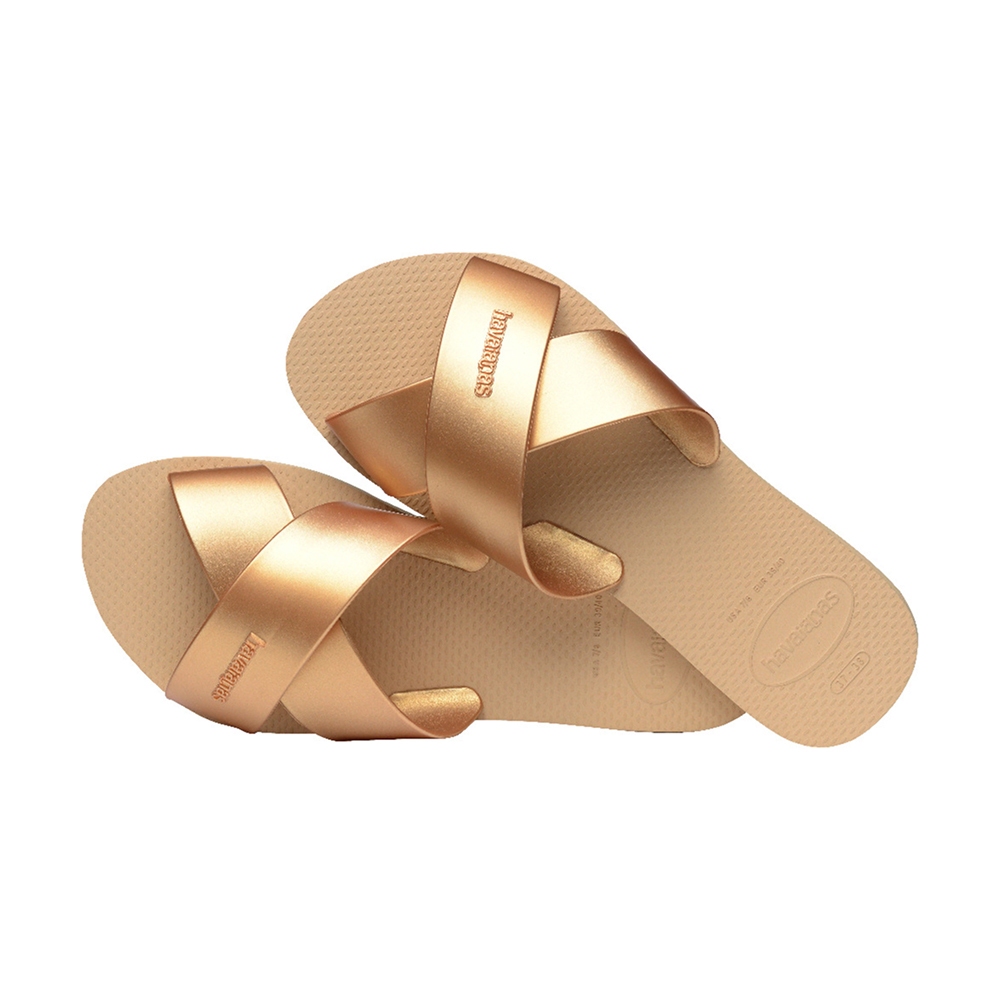 Havaianas 哈瓦仕 拖鞋 涼鞋 復古 羅馬 交叉鞋帶 金 Aqua Metallic 4148866-0570W39/40-25.5CM|41/42-27CM|33/34-22CM|35/36-23CM|37/38-24.5CMFlat Sandalshavaianas 哈瓦仕官方旗艦館