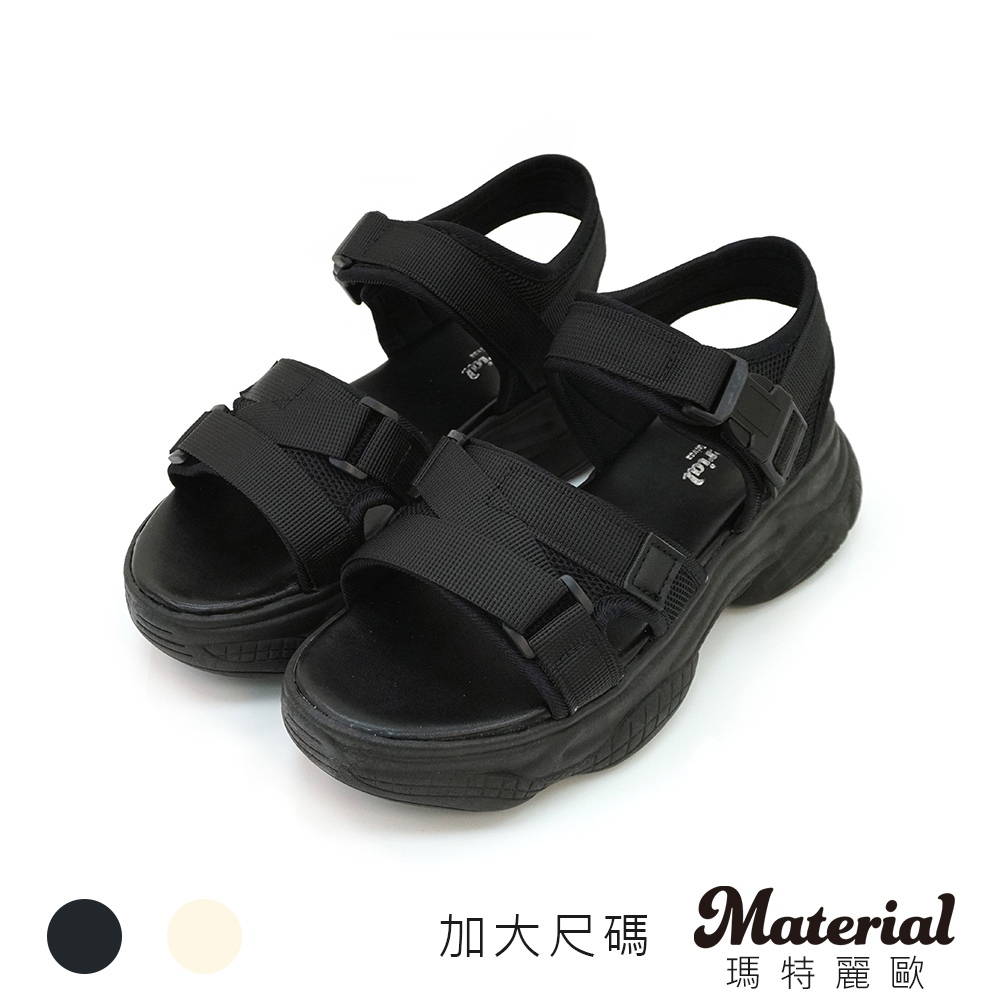 Material瑪特麗歐 TG6802 【加大尺碼25.5-27】 女鞋 涼鞋 MIT加大尺碼布面側壓扣厚底涼鞋黑色25.5|黑色26|黑色26.5|黑色27|米色25.5|米色26|米色26.5|米色27Flat SandalsMaterial 瑪特麗歐 台灣製女鞋品牌 旗艦店