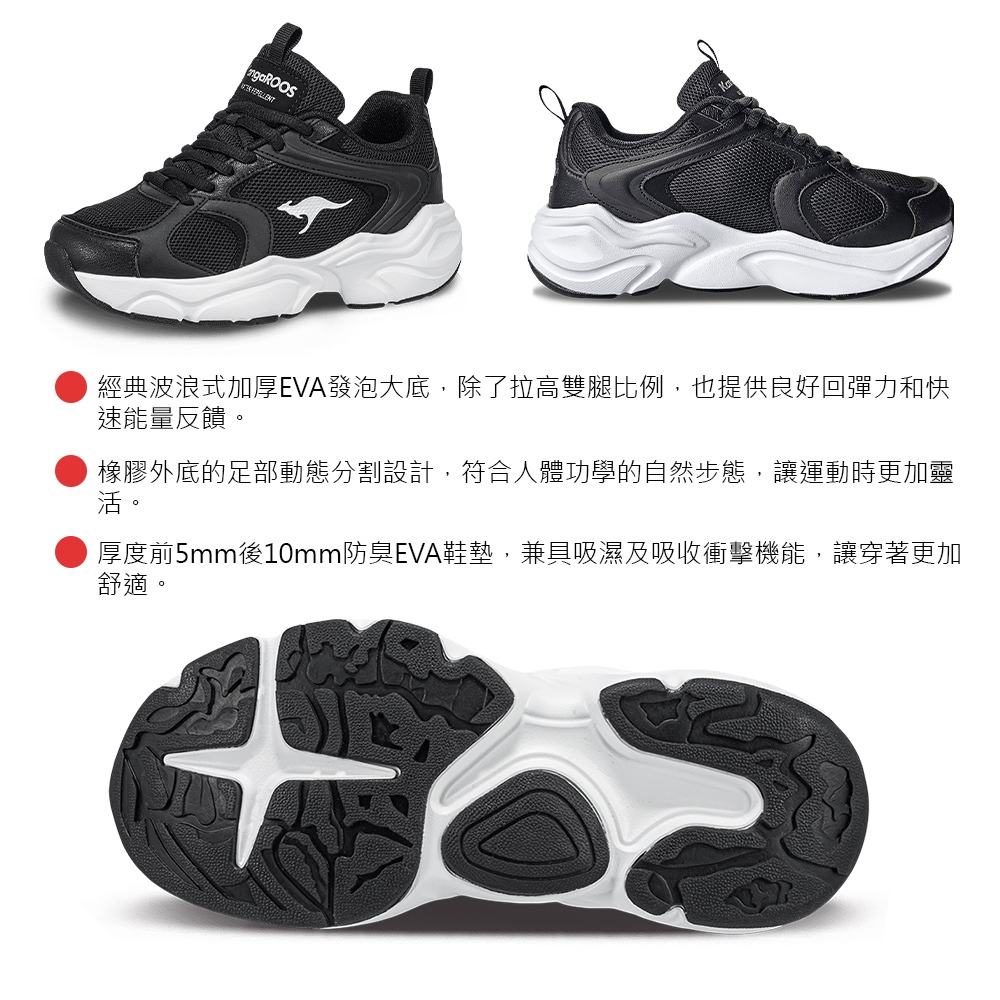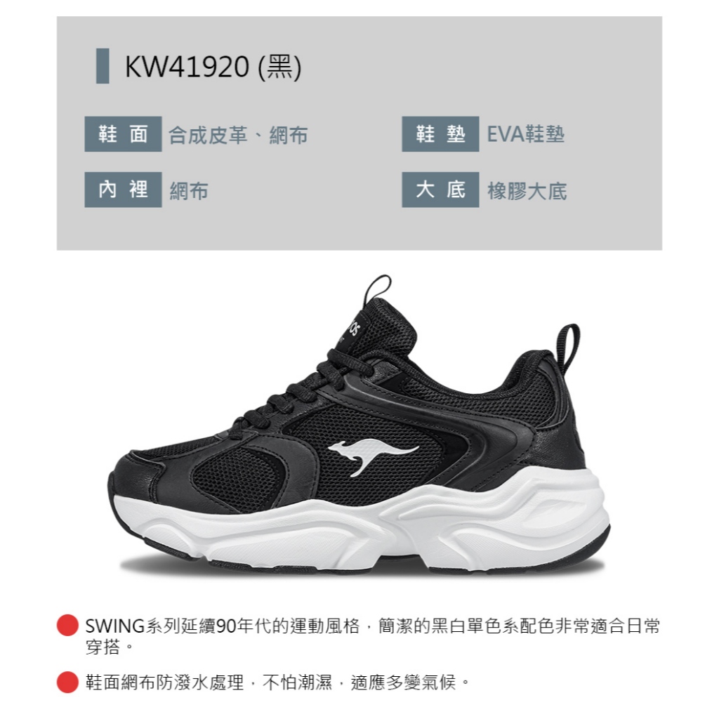 【KangaROOS 美國袋鼠鞋】女鞋 SWING 3 防潑水奶霜老爹鞋 防臭 人體工學 (黑-KW41920)23cm|23.5cm|24cm|24.5cm|25cm|25.5cmKangaROOS 美國袋鼠鞋 官方旗艦店