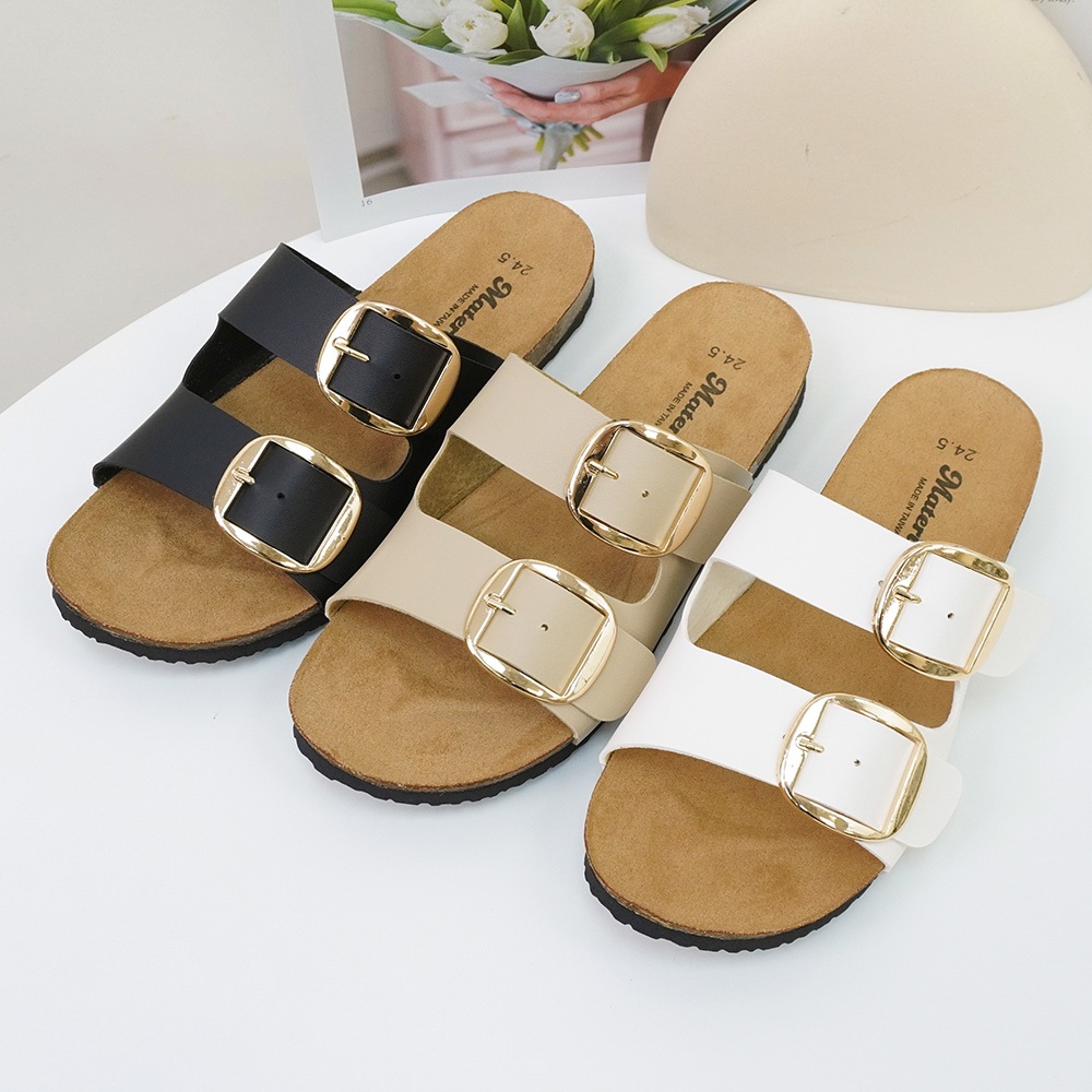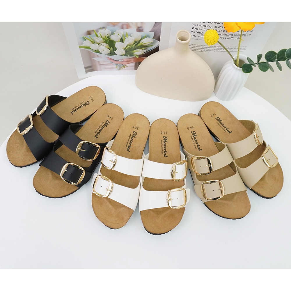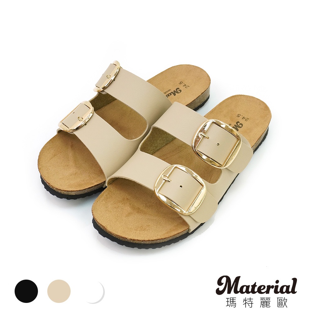 Material瑪特麗歐 T53501 【36-40】 女鞋 拖鞋 MIT簡約雙帶金釦拖鞋黑色36|黑色37|黑色38|黑色39|黑色40|卡其36|卡其37|卡其38|卡其39|卡其40|白色36|白色37|白色38|白色39|白色40Flat SandalsMaterial 瑪特麗歐 台灣製女鞋品牌 旗艦店