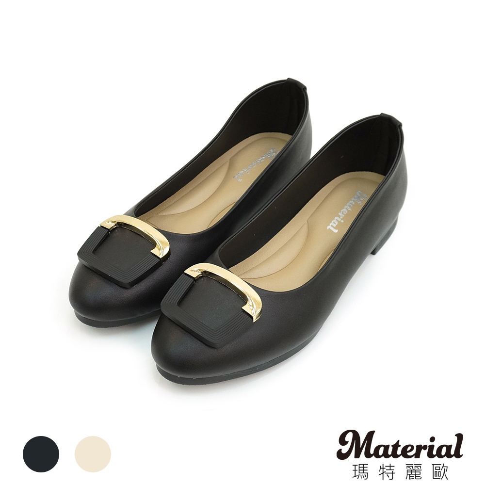 Material瑪特麗歐 T53137 一般碼23-25(另有加大碼) 女鞋 包鞋 MIT簡約方釦平底包鞋黑色23|黑色23.5|黑色24|黑色24.5|黑色25|米色23|米色23.5|米色24|米色24.5|米色25Ballet FlatsMaterial 瑪特麗歐 台灣製女鞋品牌 旗艦店