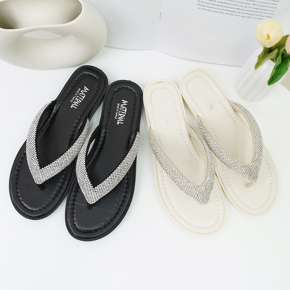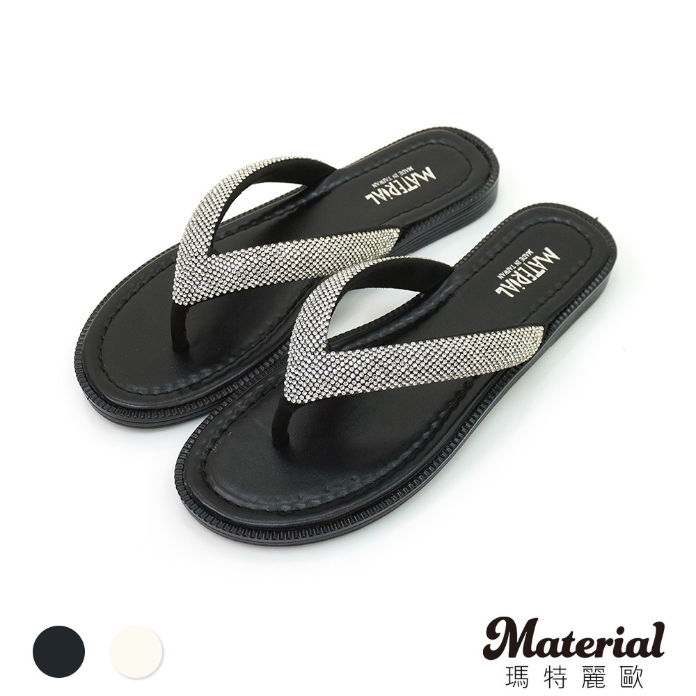 Material瑪特麗歐 T0184 一般碼23-25(另有加大碼) 女鞋 拖鞋 MIT夾腳水鑽平底拖鞋黑色23|黑色23.5|黑色24|黑色24.5|黑色25|米色23|米色23.5|米色24|米色24.5|米色25Flat SandalsMaterial 瑪特麗歐 台灣製女鞋品牌 旗艦店