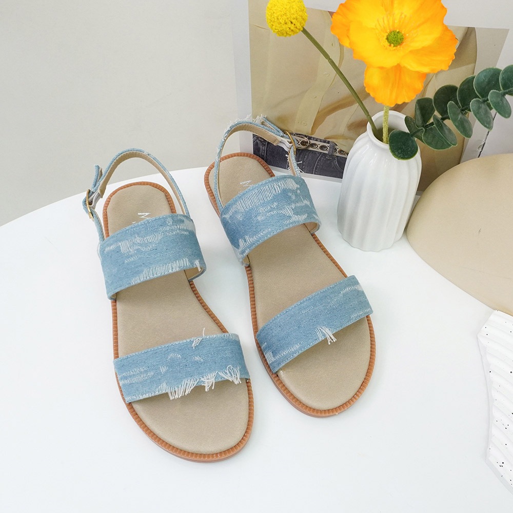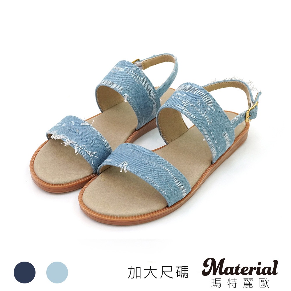 Material瑪特麗歐 TG52074 【加大尺碼25.5-27】 女鞋 涼鞋 MIT加大尺碼牛仔風涼鞋藍色25.5|藍色26|藍色26.5|藍色27|水藍25.5|水藍26|水藍26.5|水藍27Flat SandalsMaterial 瑪特麗歐 台灣製女鞋品牌 旗艦店
