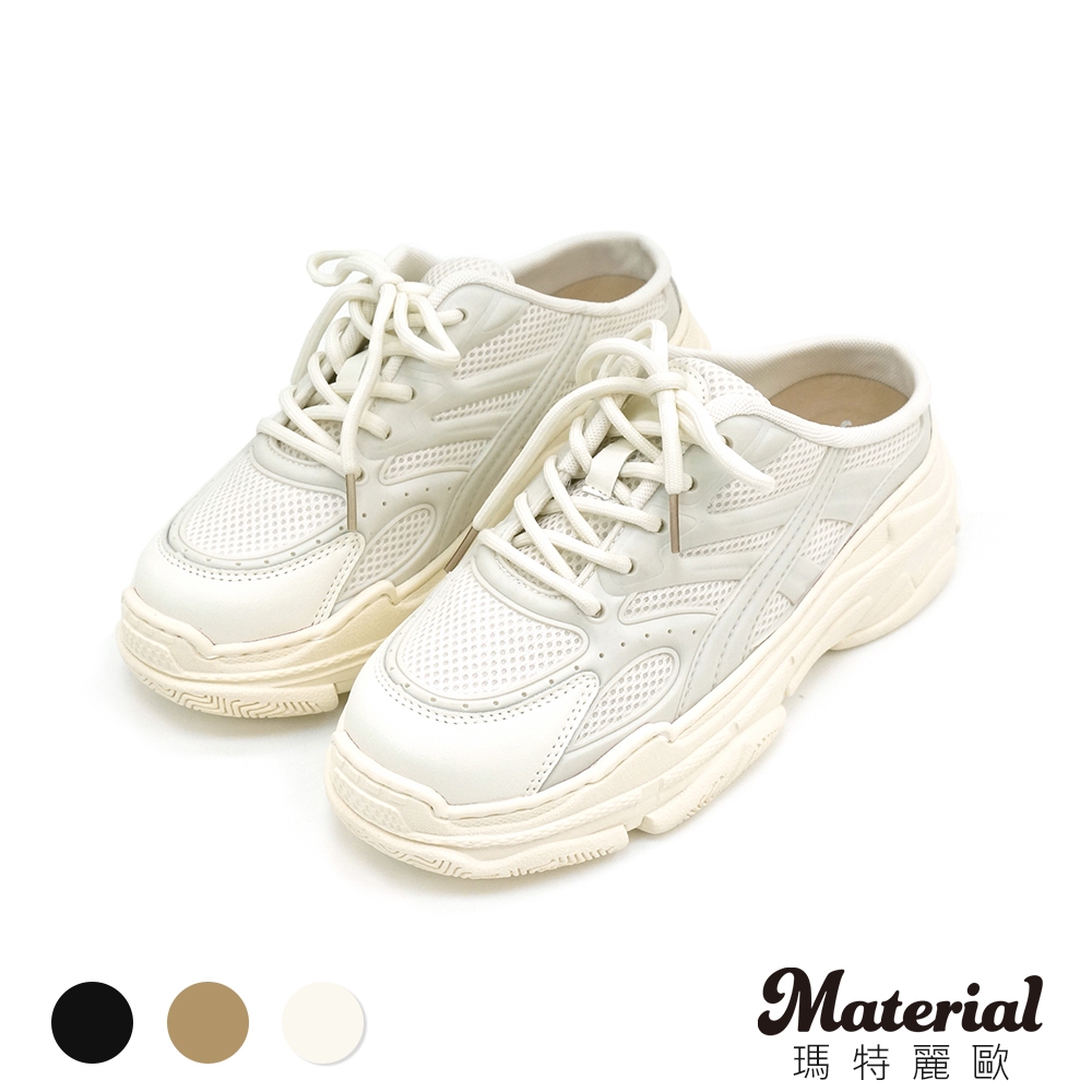 Material瑪特麗歐 T53601 一般碼23-25(另有加大碼) 女鞋 MIT潮流綁帶輕量厚底穆勒老爹鞋黑色23|黑色23.5|黑色24|黑色24.5|黑色25|米色23|米色23.5|米色24|米色24.5|米色25|卡其23|卡其23.5|卡其24|卡其24.5|卡其25Material 瑪特麗歐 台灣製女鞋品牌 旗艦店