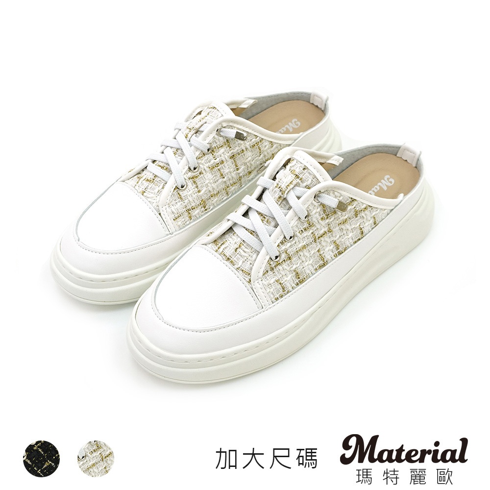 Material瑪特麗歐 TG52916 【加大尺碼25.5-27】 女鞋 穆勒鞋 MIT加大尺碼小香風拼接懶人鞋黑色25.5|黑色26|黑色26.5|黑色27|白色25.5|白色26|白色26.5|白色27Slip Ons, Mary Janes & MulesMaterial 瑪特麗歐 台灣製女鞋品牌 旗艦店
