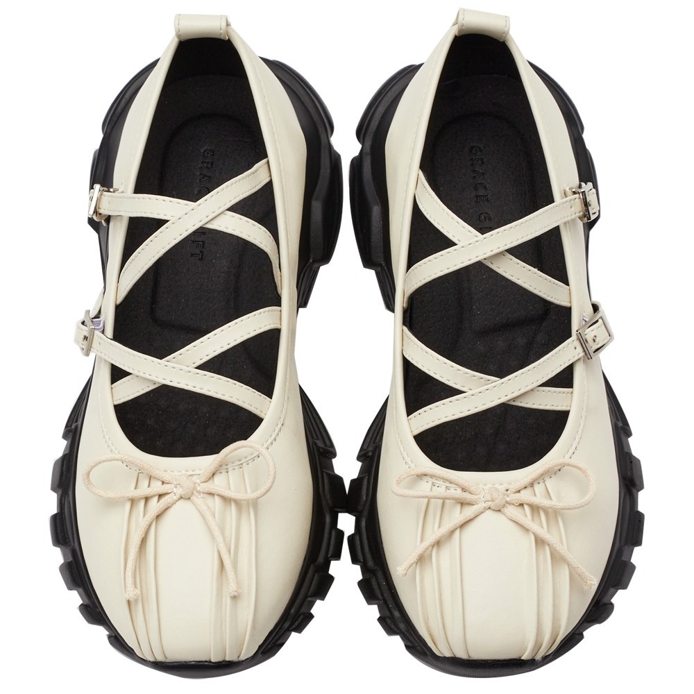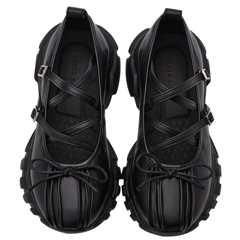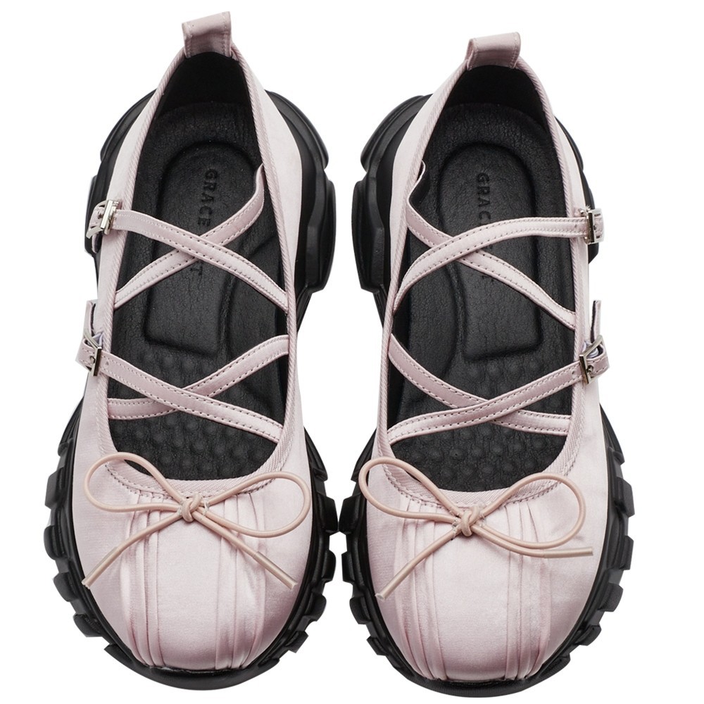 【Grace Gift】運動鞋 休閒鞋 瑪莉珍【蝴蝶結細帶厚底瑪莉珍芭蕾舞運動鞋】6色 35-41號 厚底鞋 瑪麗珍