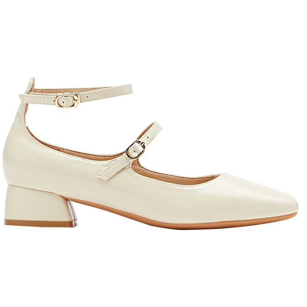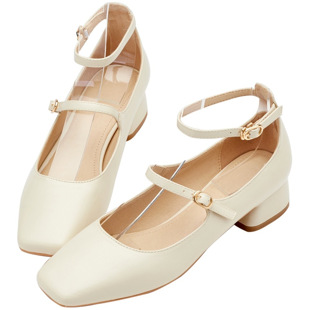 • 【Grace Gift】瑪莉珍鞋 包鞋 瑪麗珍【復古方頭雙帶中跟芭蕾瑪莉珍鞋】4色 35-42號 大尺碼 瑪莉珍