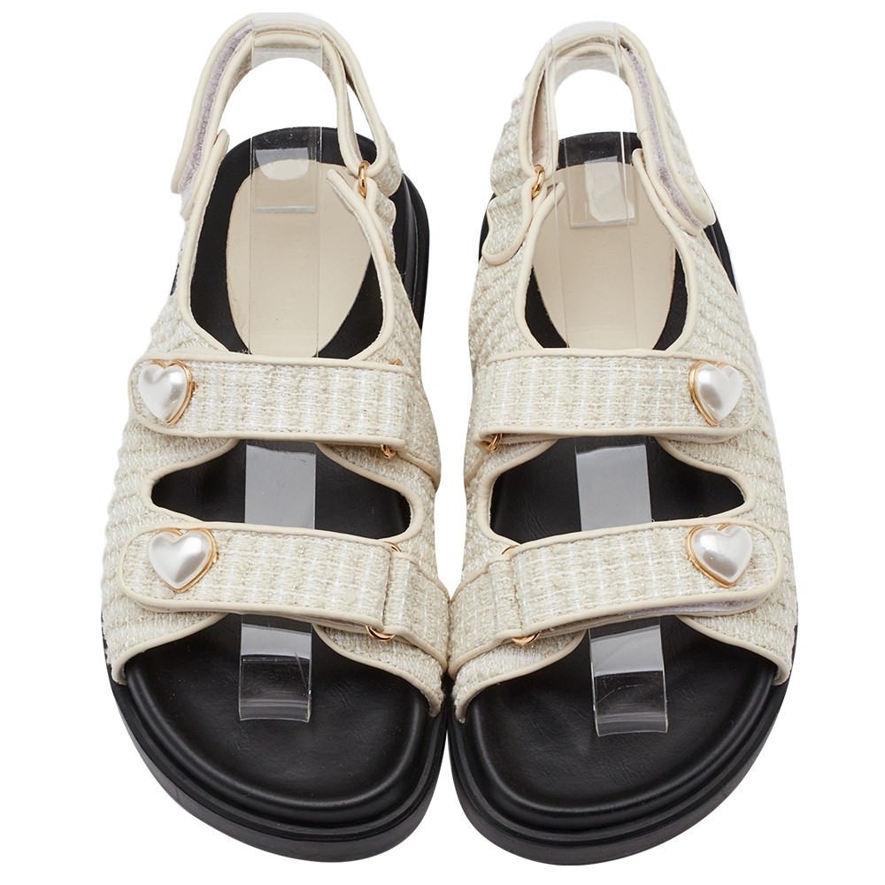 【Grace Gift】】涼鞋 平底涼鞋【珍珠愛心雙帶魔鬼氈涼鞋】5色 35-43號 大尺碼 涼鞋女