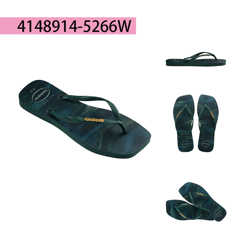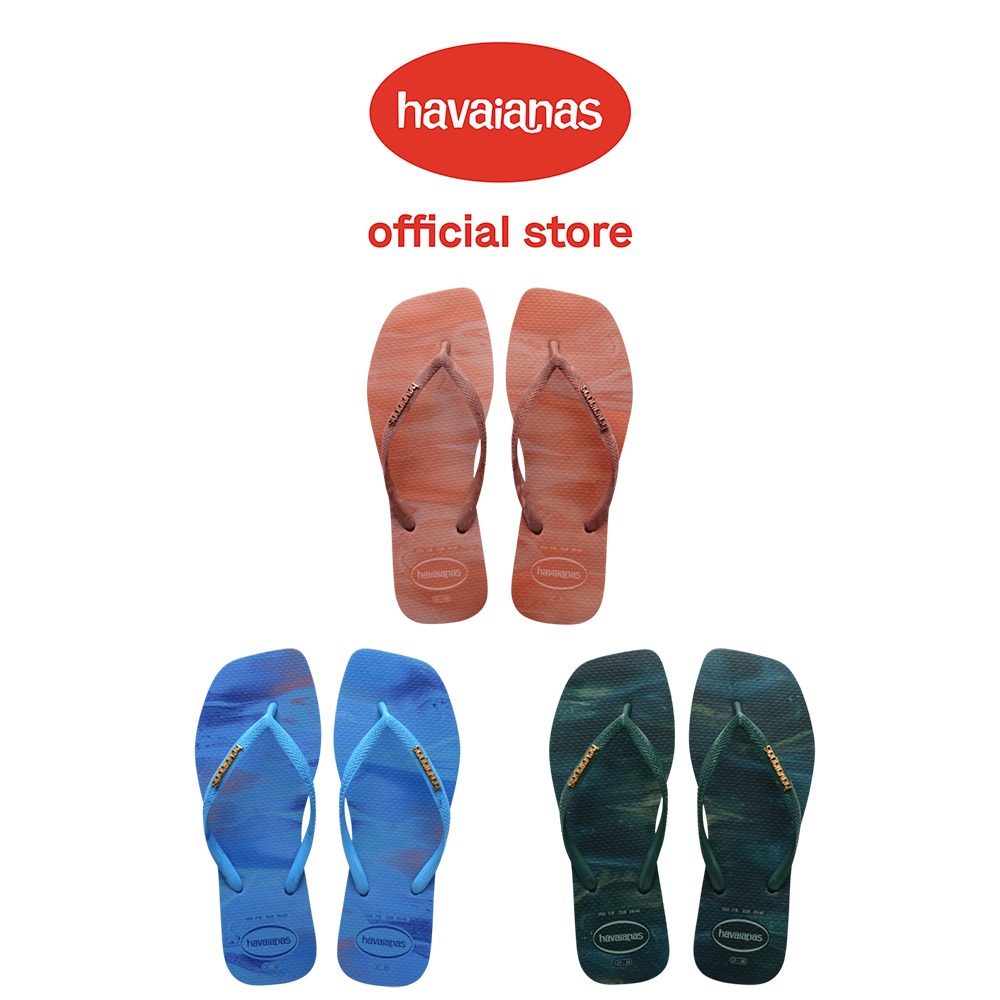 • Havaianas哈瓦仕 Slim Square Trendy 方形 漸層 渲染 金屬Logo 拖鞋 夾腳拖 共3色
