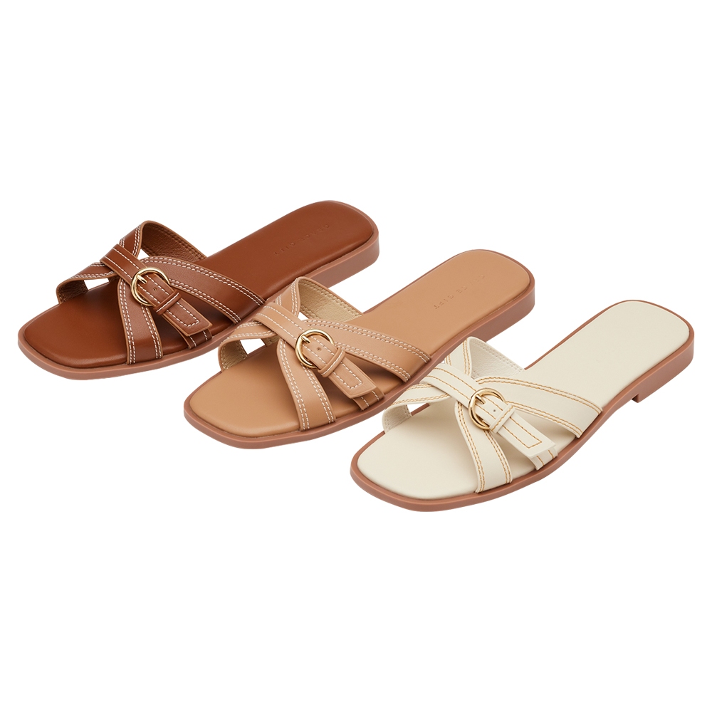• 【Grace Gift】拖鞋 女鞋 平底拖鞋【峇里風情交叉皮帶扣雲感平底拖鞋】3色 35-43號 大尺碼鞋 度假涼鞋