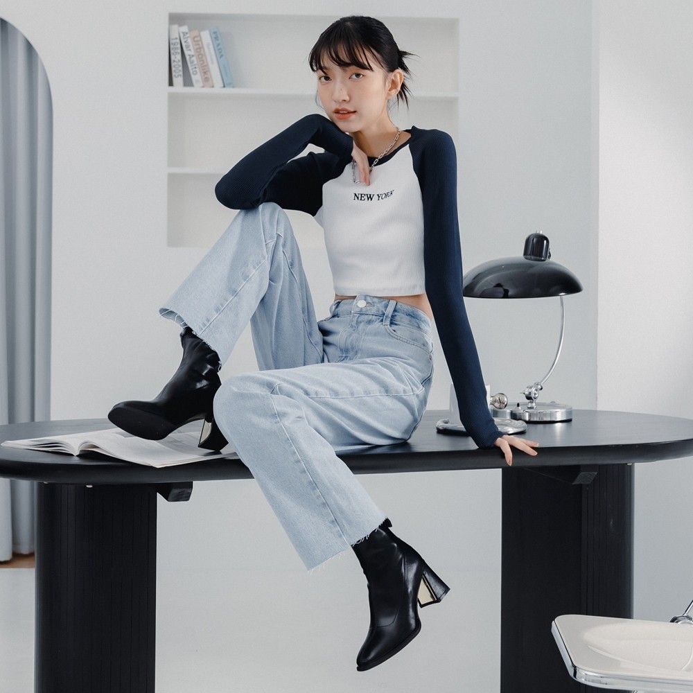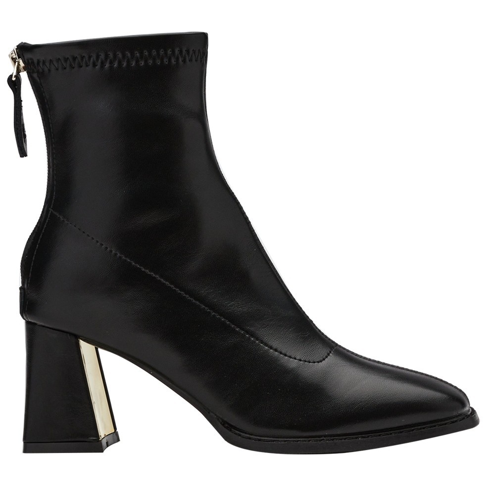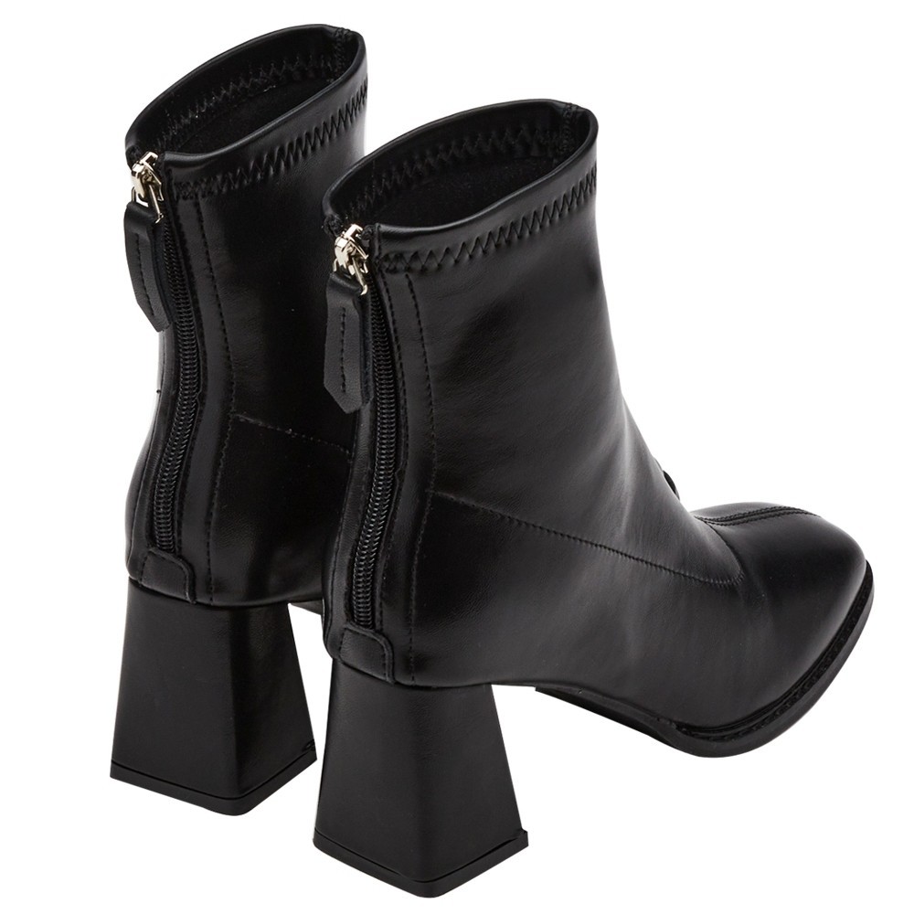 【Grace Gift】靴子 短靴 襪靴【俐落百搭後拉鍊中高跟襪靴】2色 35-40號 高跟 素面靴