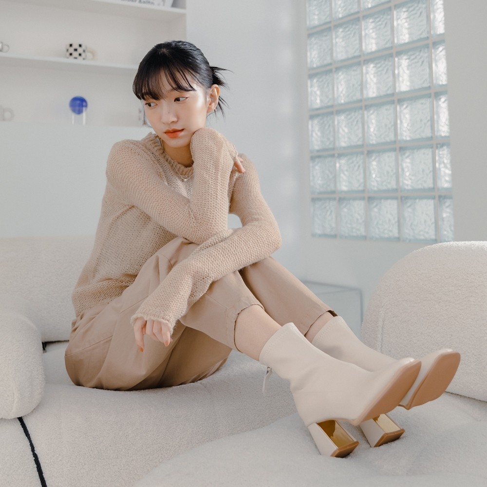 【Grace Gift】靴子 短靴 襪靴【俐落百搭後拉鍊中高跟襪靴】2色 35-40號 高跟 素面靴黑,35|黑,36|黑,37|黑,38|黑,39|黑,40|米白,35|米白,36|米白,37|米白,38|米白,39|米白,40Fashion BootsGrace gift 正式官方旗艦店