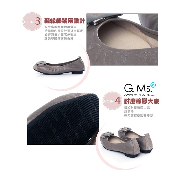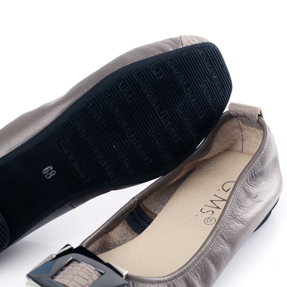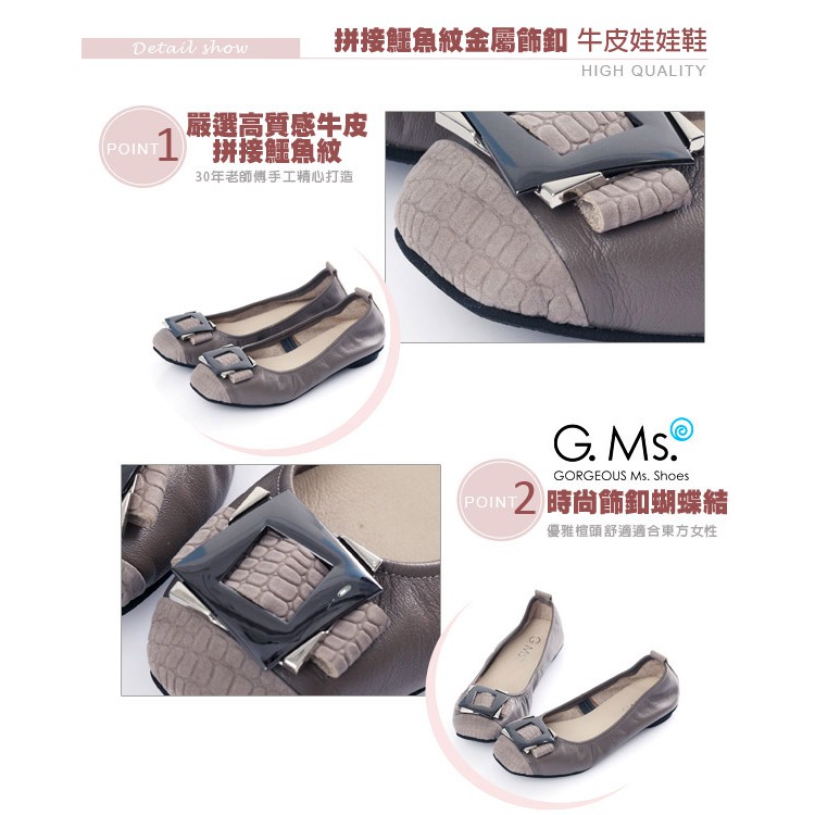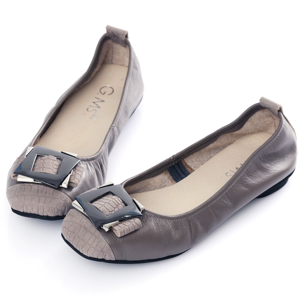 G.Ms. MIT系列-拼接鱷魚紋金屬飾釦牛皮娃娃鞋-高貴灰35|36|38|37|39|40|41Ballet FlatsG. Ms.完美女鞋