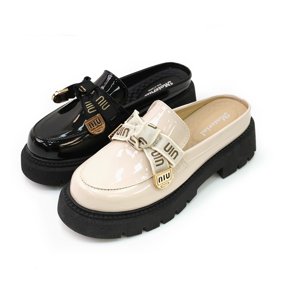 Material瑪特麗歐 T53103 一般碼23-25(另有加大碼) 女鞋 樂福鞋 MIT時髦蝴蝶結厚底穆勒鞋黑鏡23|黑鏡23.5|黑鏡24|黑鏡24.5|黑鏡25|米色23|米色23.5|米色24|米色24.5|米色25Loafers & Boat ShoesMaterial 瑪特麗歐 台灣製女鞋品牌 旗艦店