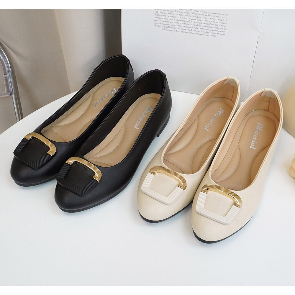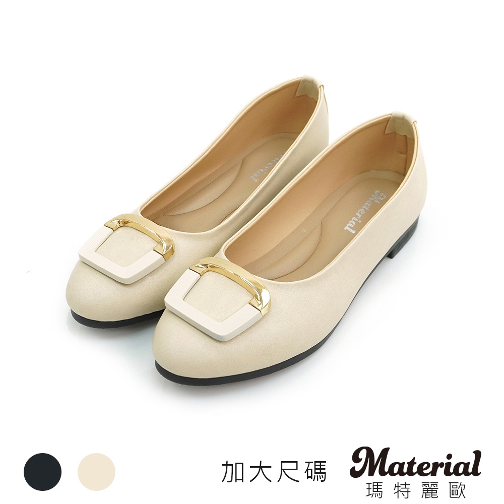 Material瑪特麗歐 TG53137 【加大尺碼25.5-27】 女鞋 包鞋 MIT加大尺碼簡約方釦平底包鞋黑色25.5|黑色26|黑色26.5|黑色27|米色25.5|米色26|米色26.5|米色27Ballet FlatsMaterial 瑪特麗歐 台灣製女鞋品牌 旗艦店