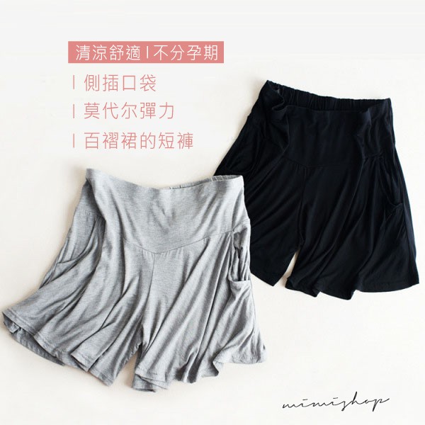 MIMI別走孕婦裝 純粹美好 莫代尔彈力口袋短褲 孕婦褲 孕婦裙【P61905】灰|黑Maternity BottomsMIMI別走孕婦裝哺乳衣
