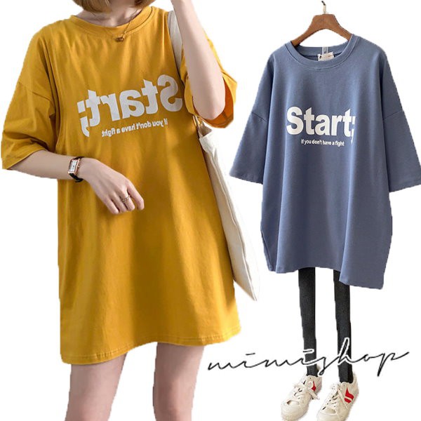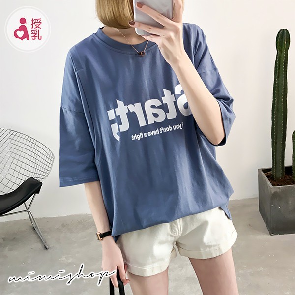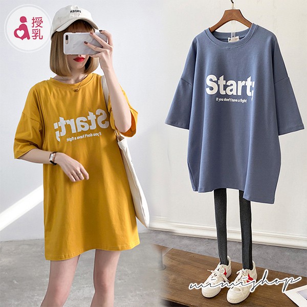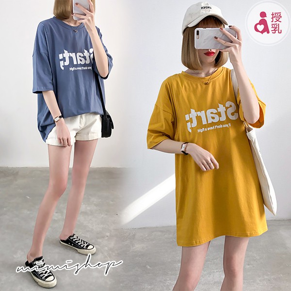 MIMI別走孕婦裝 放鬆一下吧 寬版Start字母棉質哺乳衣 孕哺兩用【P12203】藍|黃Breastfeeding WearMIMI別走孕婦裝哺乳衣