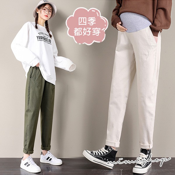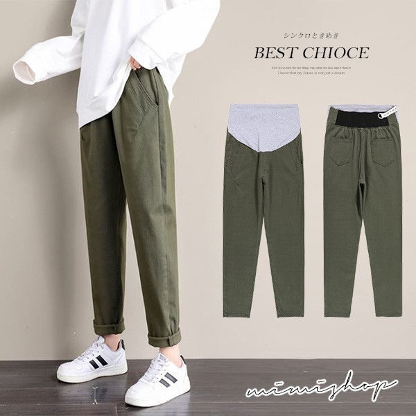 MIMI別走孕婦裝 四季穿搭 水洗棉彈力孕婦褲 哈倫褲 休閒褲【P61954】黑,L|黑,XL|黑,XXL|軍綠,L|軍綠,XL|軍綠,XXL|黑,M|軍綠,MMaternity BottomsMIMI別走孕婦裝哺乳衣