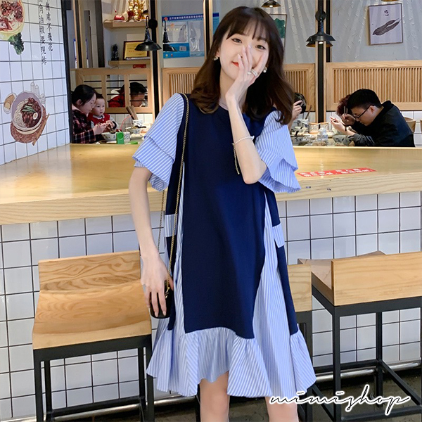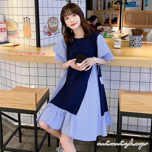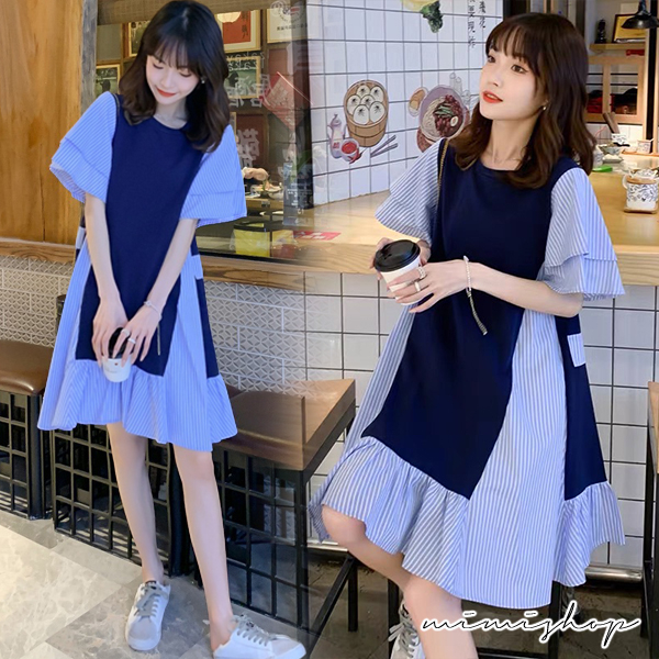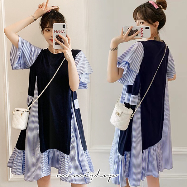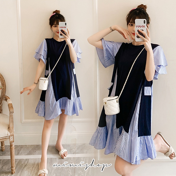 MIMI別走孕婦裝 顯瘦推薦 寬版拚接條紋連衣裙 孕婦洋裝【P521995】藍拚條紋Maternity DressesMIMI別走孕婦裝哺乳衣