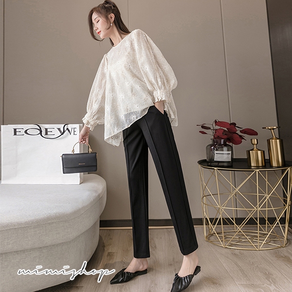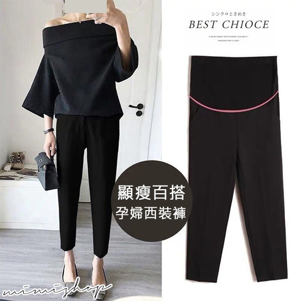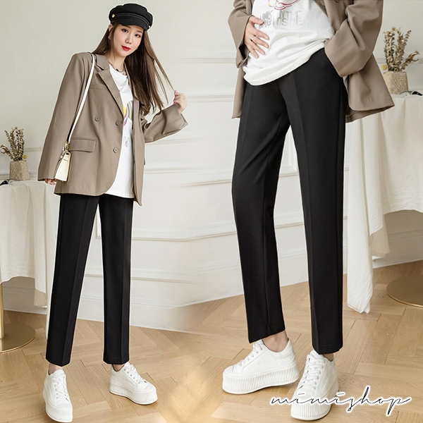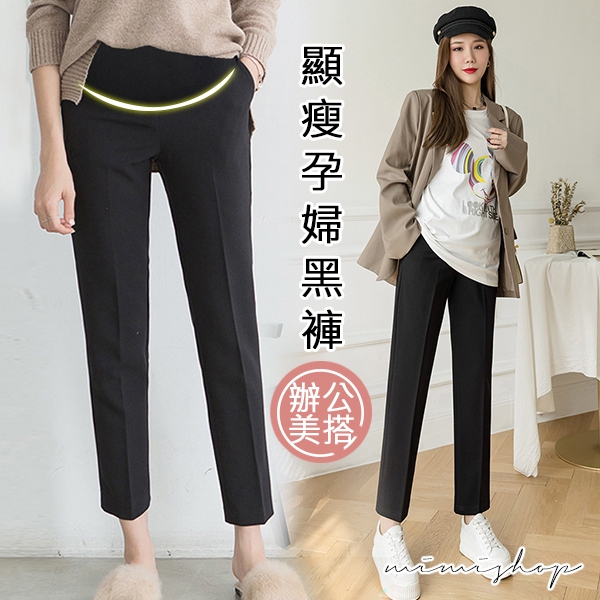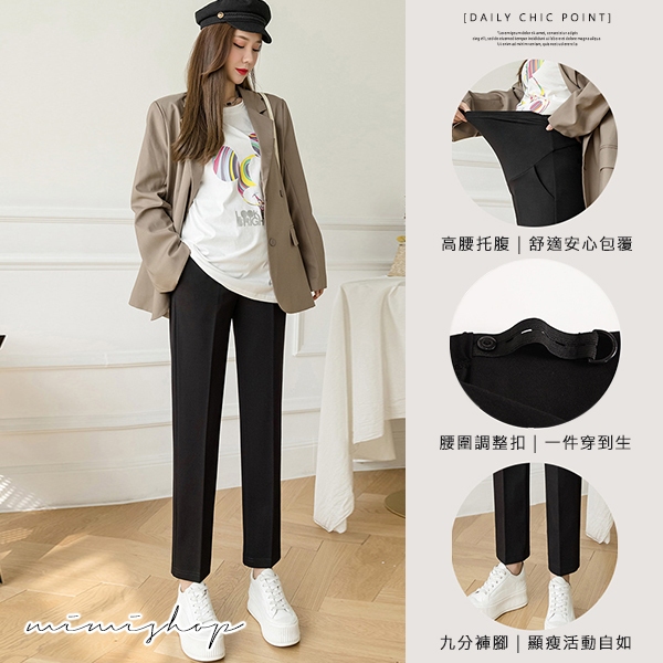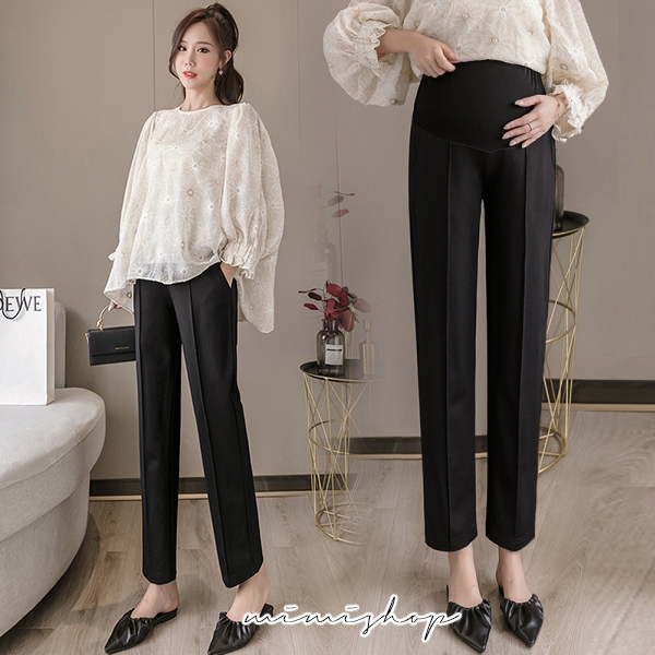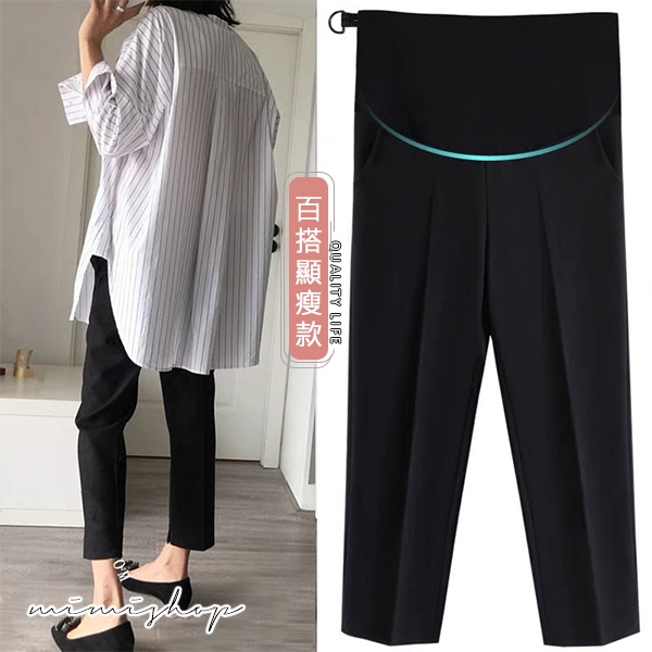 MIMI別走孕婦裝 顯瘦媽咪職業褲 孕婦褲 九分褲 托腹設計【P62216】黑,M|黑,L|黑,XL|黑,XXLMaternity BottomsMIMI別走孕婦裝哺乳衣