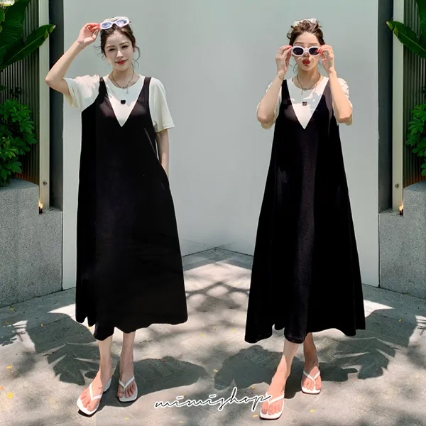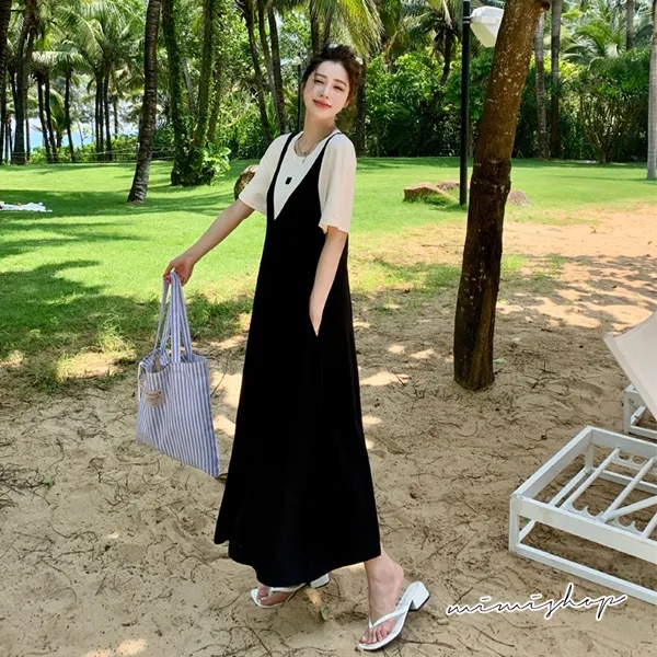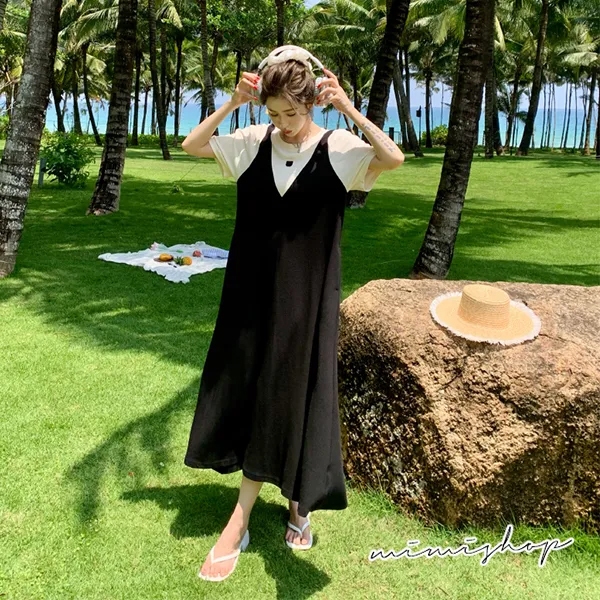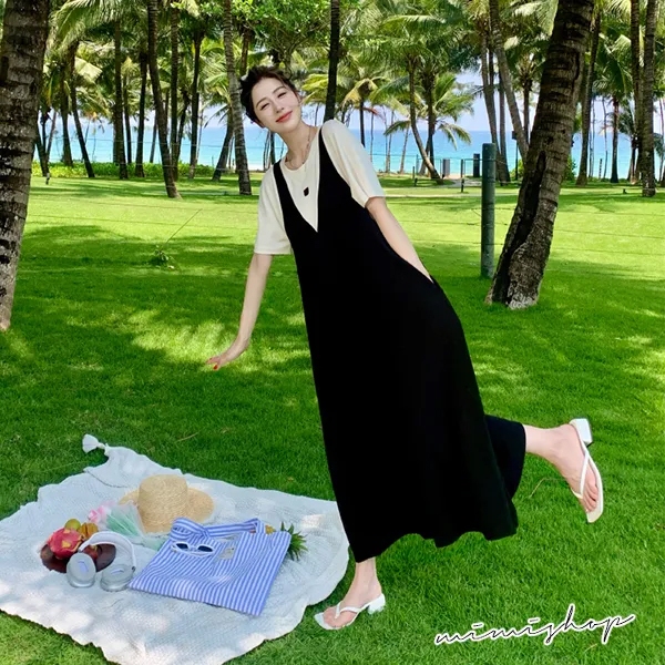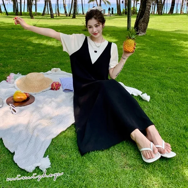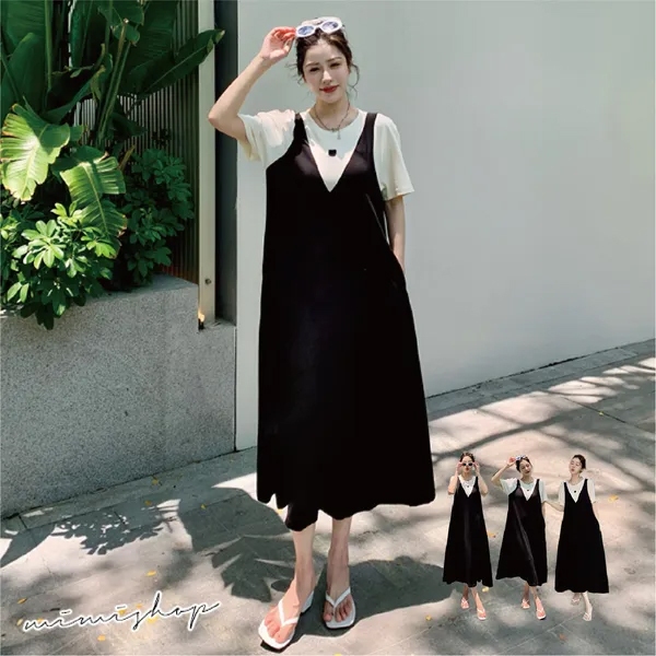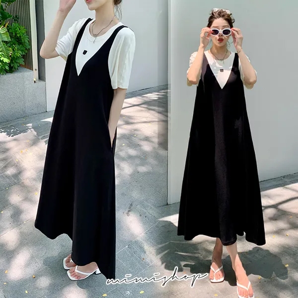 MIMI別走孕婦裝 單穿就好看 顯瘦假兩件背心裙 孕婦洋裝 長裙【P522117】黑,FMaternity DressesMIMI別走孕婦裝哺乳衣