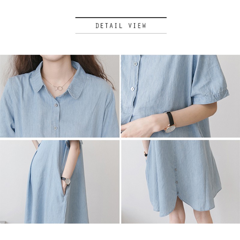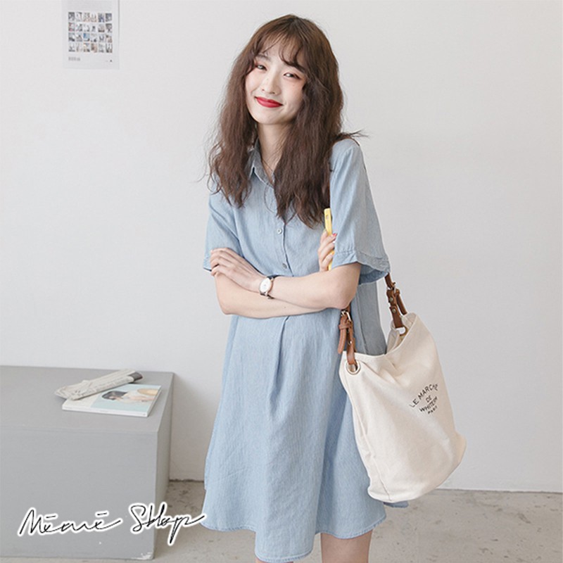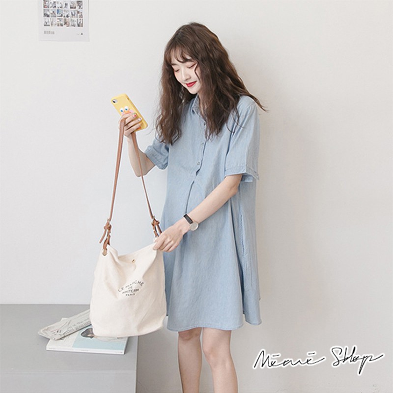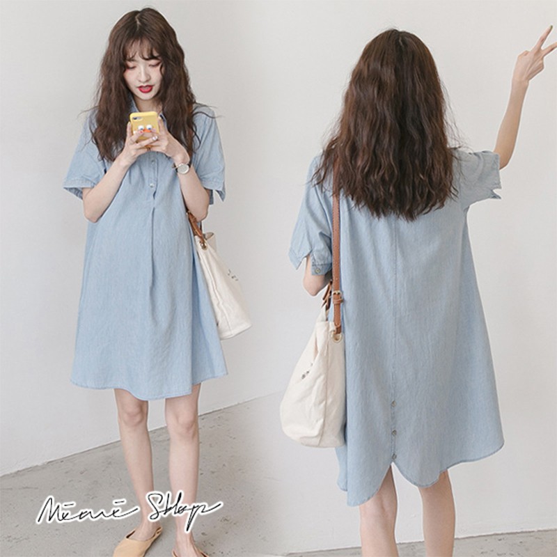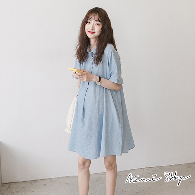 MIMI別走孕婦裝 完美清新 翻領襯衫連身裙 開扣哺乳裙 寬襬修飾【P52881】藍Maternity DressesMIMI別走孕婦裝哺乳衣