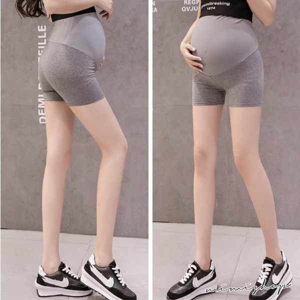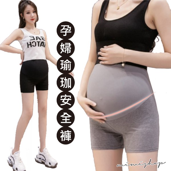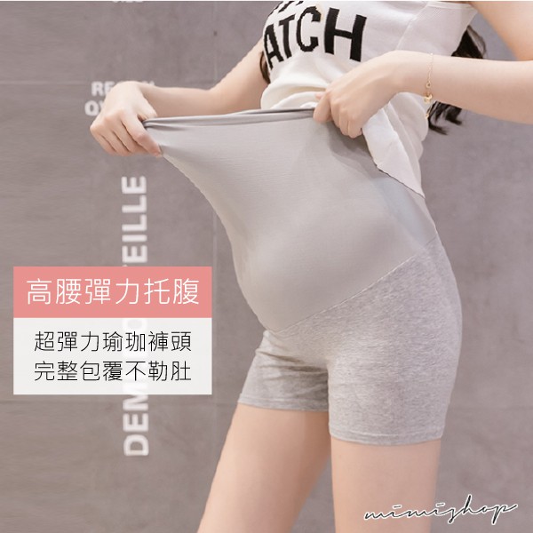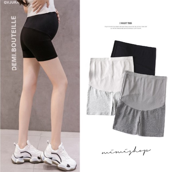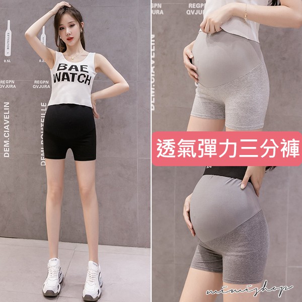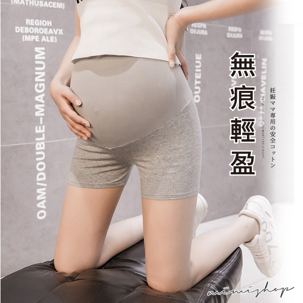 MIMI別走孕婦裝 無痕輕盈 透氣高彈孕婦褲 安全褲 瑜珈三分褲 舒適無扣【P61950】黑色|深灰|淺灰Maternity BottomsMIMI別走孕婦裝哺乳衣