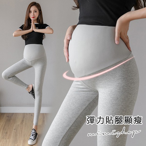 MIMI別走孕婦裝 優雅姿態 透氣貼腿彈力孕婦褲 內搭褲 瑜珈褲 【P61949】黑,L|深灰,M|淺灰,M|淺灰,L|淺灰,XL|黑,M|黑,XL|深灰,L|深灰,XLMaternity BottomsMIMI別走孕婦裝哺乳衣