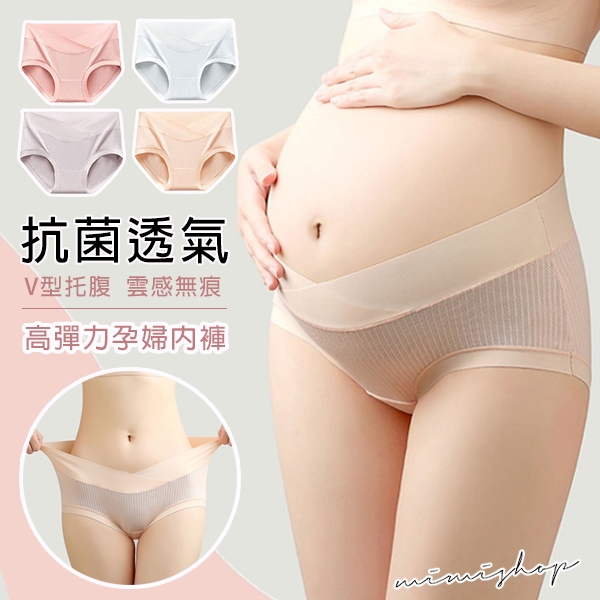 MIMI別走孕婦裝 抑菌透氣 V型托腹 莫代爾緹花高彈力孕婦內褲 雲感無痕【P71044】藍,F|粉,F|膚,F|灰紫,FOthersMIMI別走孕婦裝哺乳衣