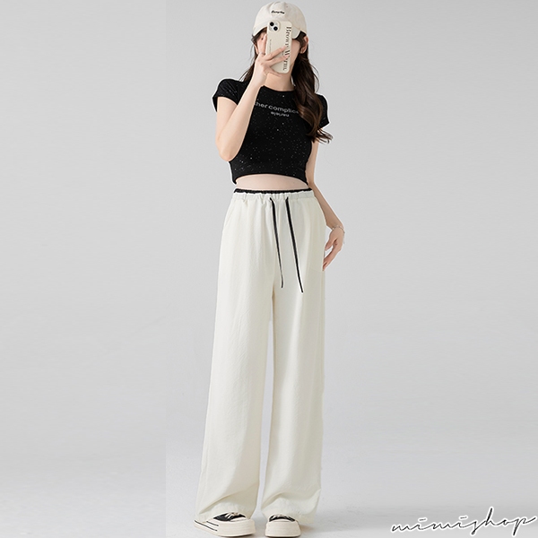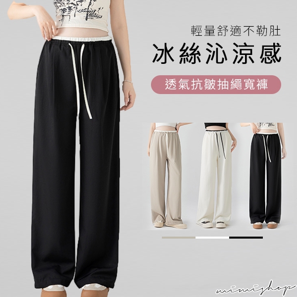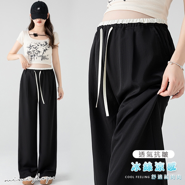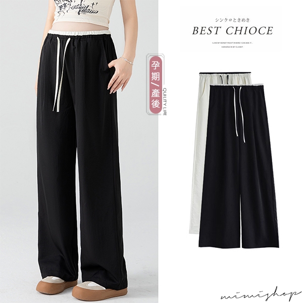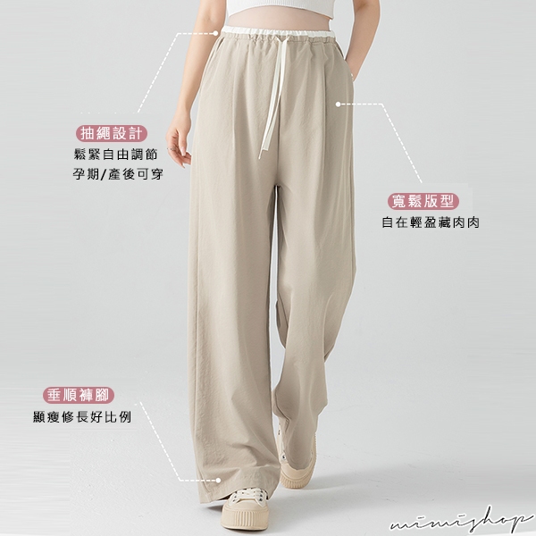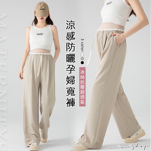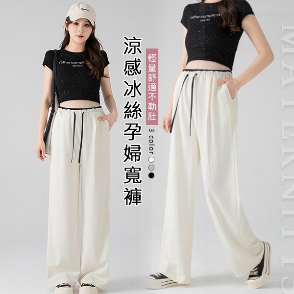 MIMI別走孕婦裝 輕涼透氣 冰絲抗皺抽繩闊腿褲 休閒褲 孕婦褲 【P62386】黑,M|黑,L|黑,XL|黑,XXL|白,M|白,L|白,XL|白,XXL|卡其,M|卡其,L|卡其,XL|卡其,XXLMaternity BottomsMIMI別走孕婦裝哺乳衣