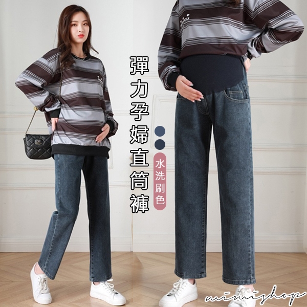 MIMI別走孕婦裝就愛舒適 水洗彈力刷色牛仔褲 孕婦褲 直筒褲【P62324】淺藍,M|淺藍,L|淺藍,XL|淺藍,XXL|復古藍,M|復古藍,L|復古藍,XL|復古藍,XXLMaternity BottomsMIMI別走孕婦裝哺乳衣