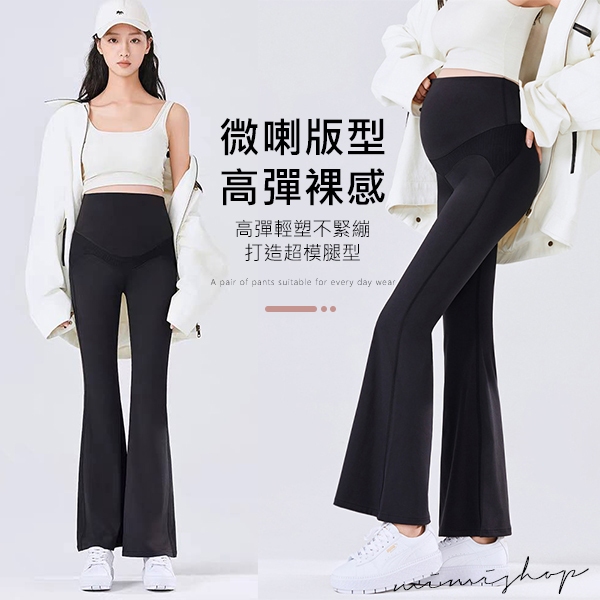 MIMI別走孕婦裝 新升級 顯瘦腿長 高彈塑形微喇孕婦褲 無感托腹【P62356】黑,M|黑,L|黑,XL|灰,M|灰,L|灰,XL|咖,M|咖,L|咖,XLMaternity BottomsMIMI別走孕婦裝哺乳衣