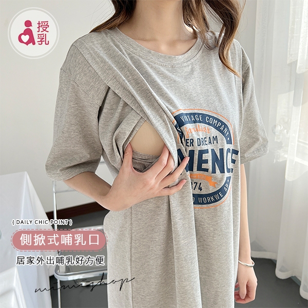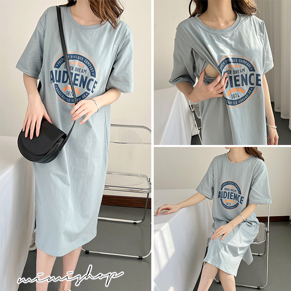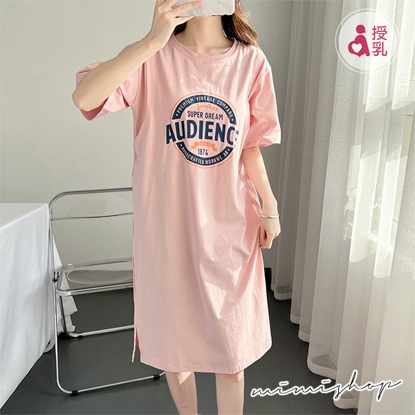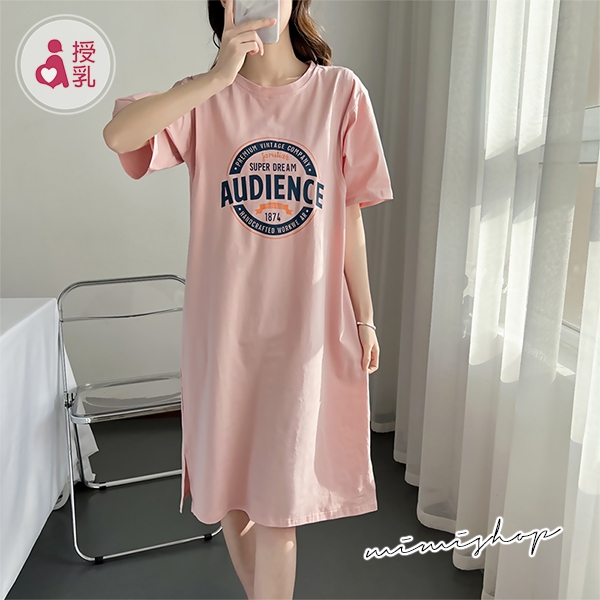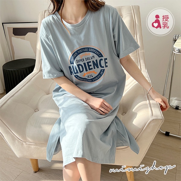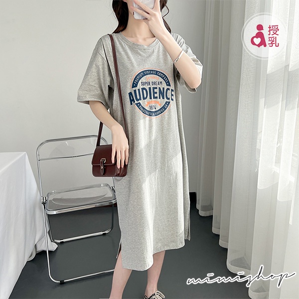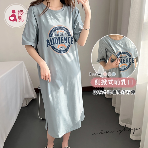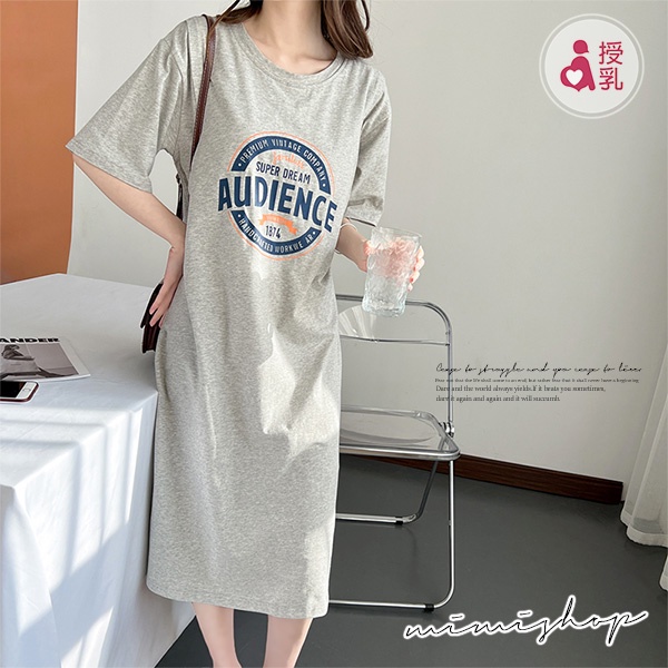 MIMI別走孕婦裝 單穿就出門 高棉質字母哺乳裙 坐月子 孕婦裙【P12351】粉|藍|灰Breastfeeding WearMIMI別走孕婦裝哺乳衣