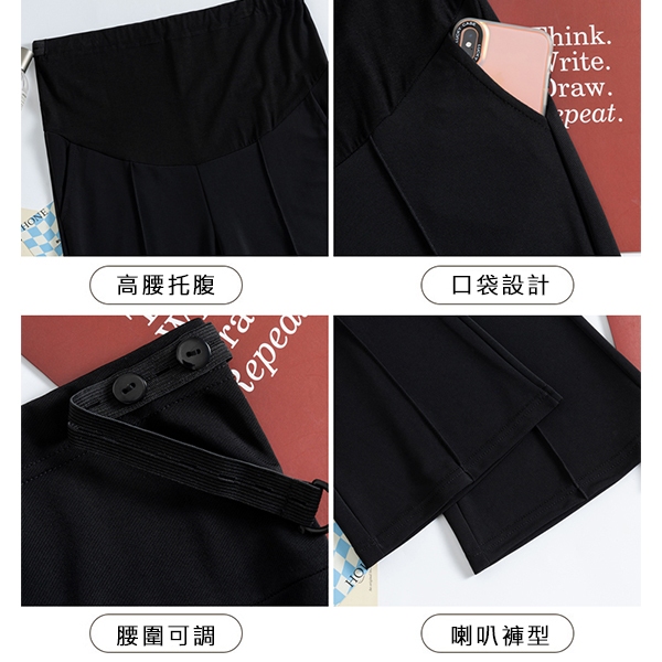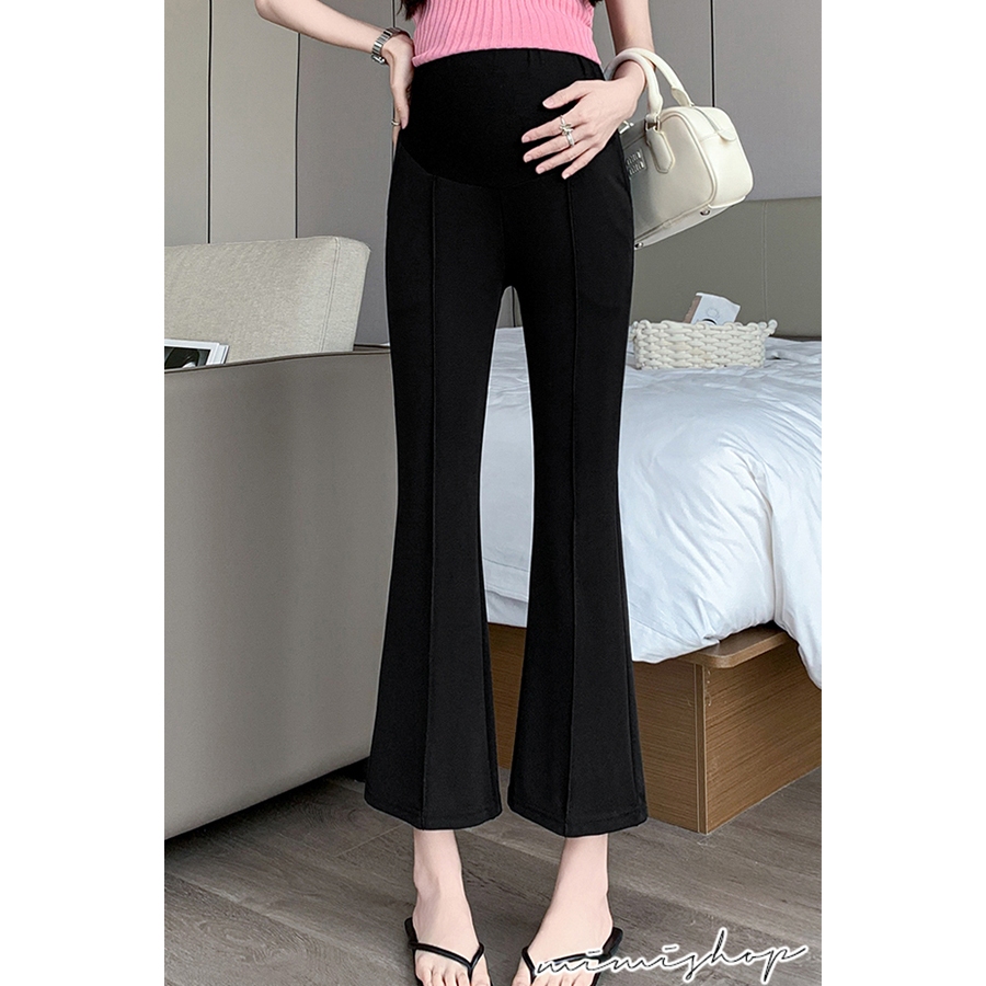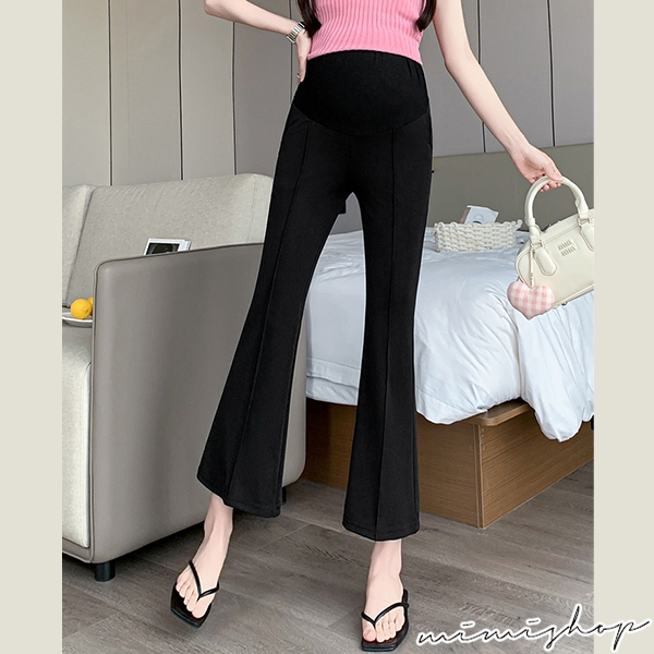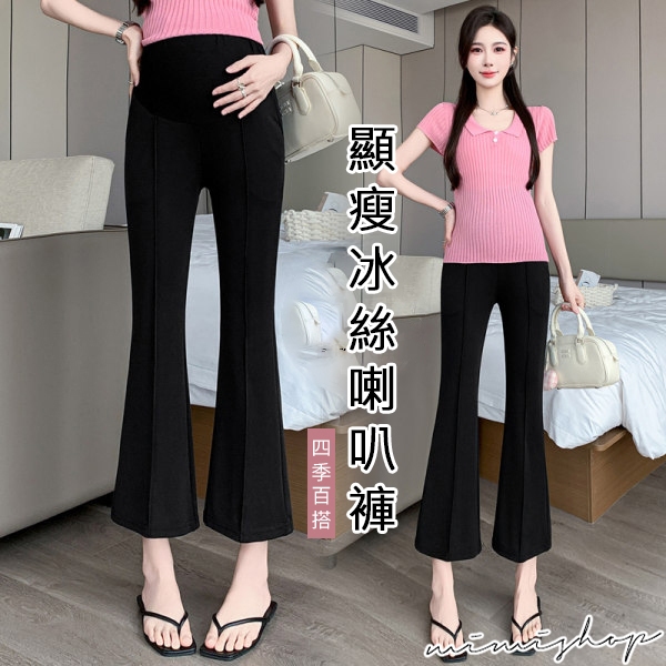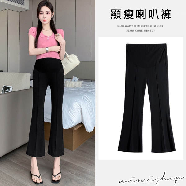 MIMI別走孕婦裝 四季百搭 彈力冰絲喇叭褲 孕婦褲 顯瘦小黑褲 【P62392】黑,M|黑,L|黑,XL|黑,XXLMaternity BottomsMIMI別走孕婦裝哺乳衣