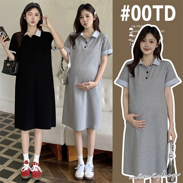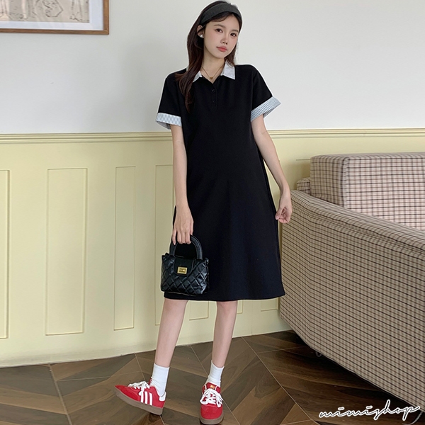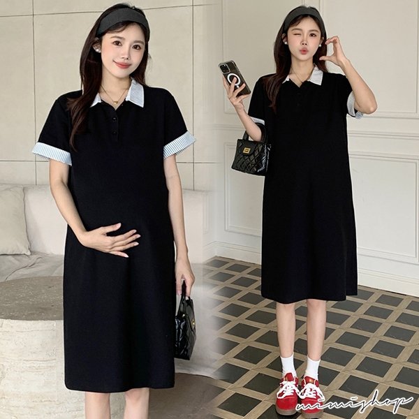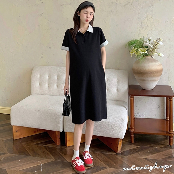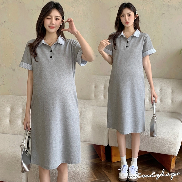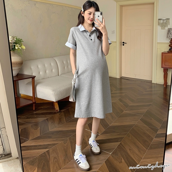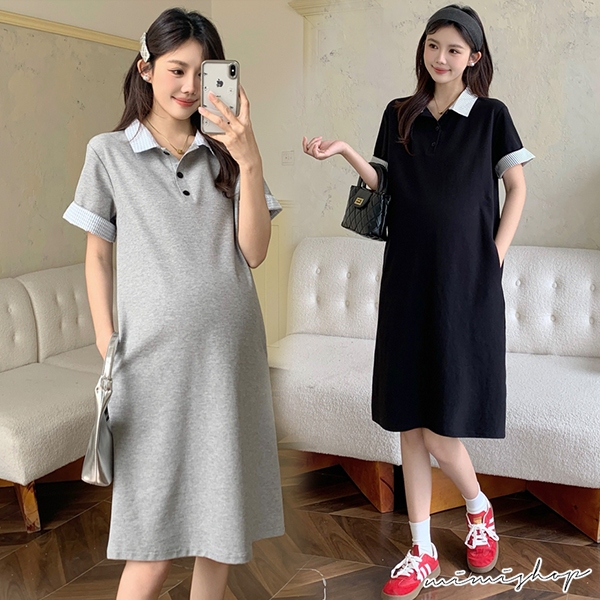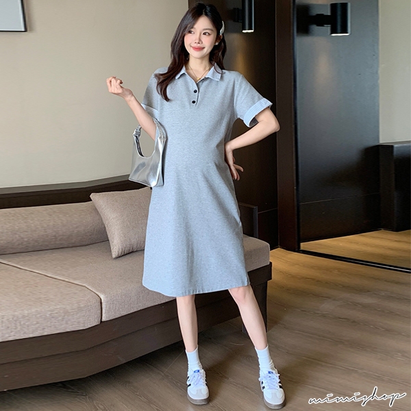 MIMI別走孕婦裝 顯瘦版型 棉質網眼Polo連身裙 孕婦裙 不限孕期【P522254】黑,F|灰,FMaternity DressesMIMI別走孕婦裝哺乳衣