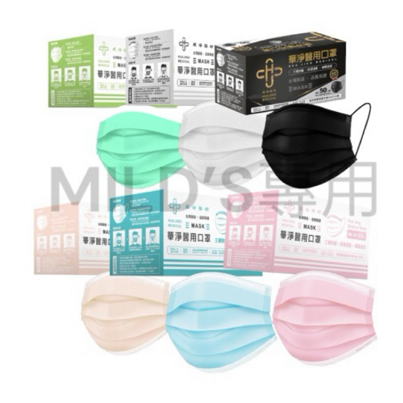 華淨★成人平面醫用口罩(50入/盒)➤六色(粉/藍/黑/白/綠/粉橘)黑色|粉色|藍色Medical Gloves & MasksMILD’S曼思美研所♡官方網站♡