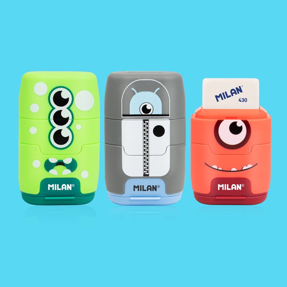 MILAN COMPACT橡皮擦+削筆器_星際小小兵(3色可選)綠星人|灰星人|紅星人|補充橡皮擦(4入不挑色)Eraser & Correction SuppliesMILAN西班牙百年文具品牌