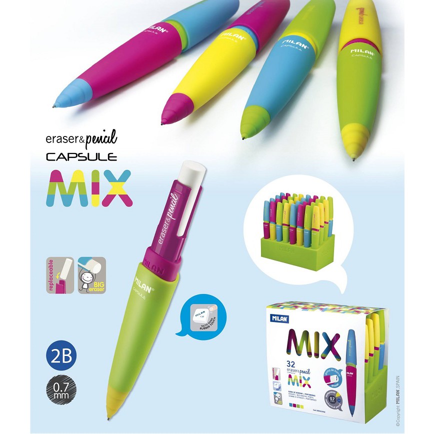 MILAN CAPSULE撞色積木自動鉛筆_0.7mm(4色隨機出貨)自動鉛筆(隨機)|補充橡皮擦4入組PencilsMILAN西班牙百年文具品牌