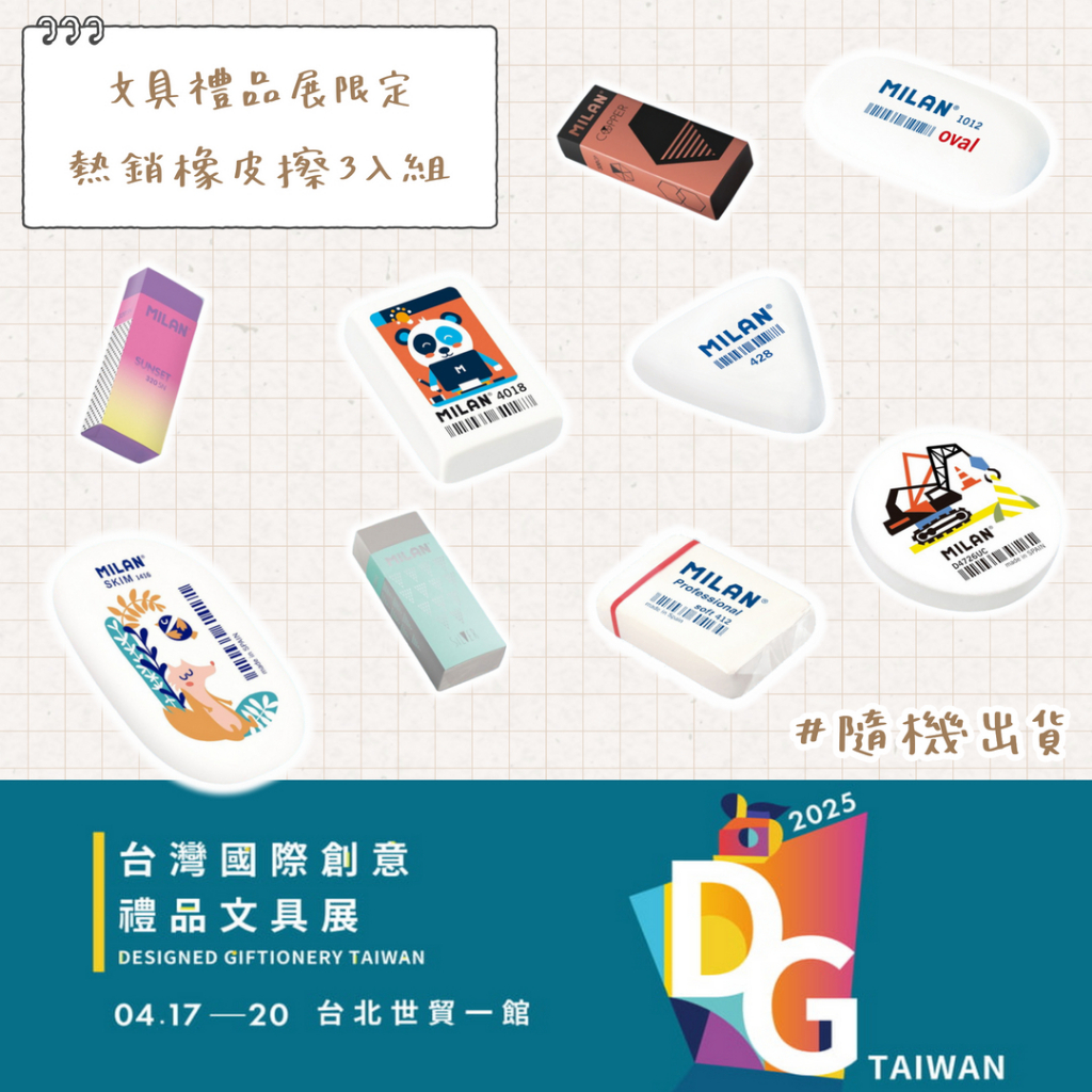 MILAN安全無毒 橡皮擦 人氣熱銷組 百年文具熱銷橡皮擦3入組(隨機)|人氣橡皮擦3入組(隨機)Eraser & Correction SuppliesMILAN西班牙百年文具品牌