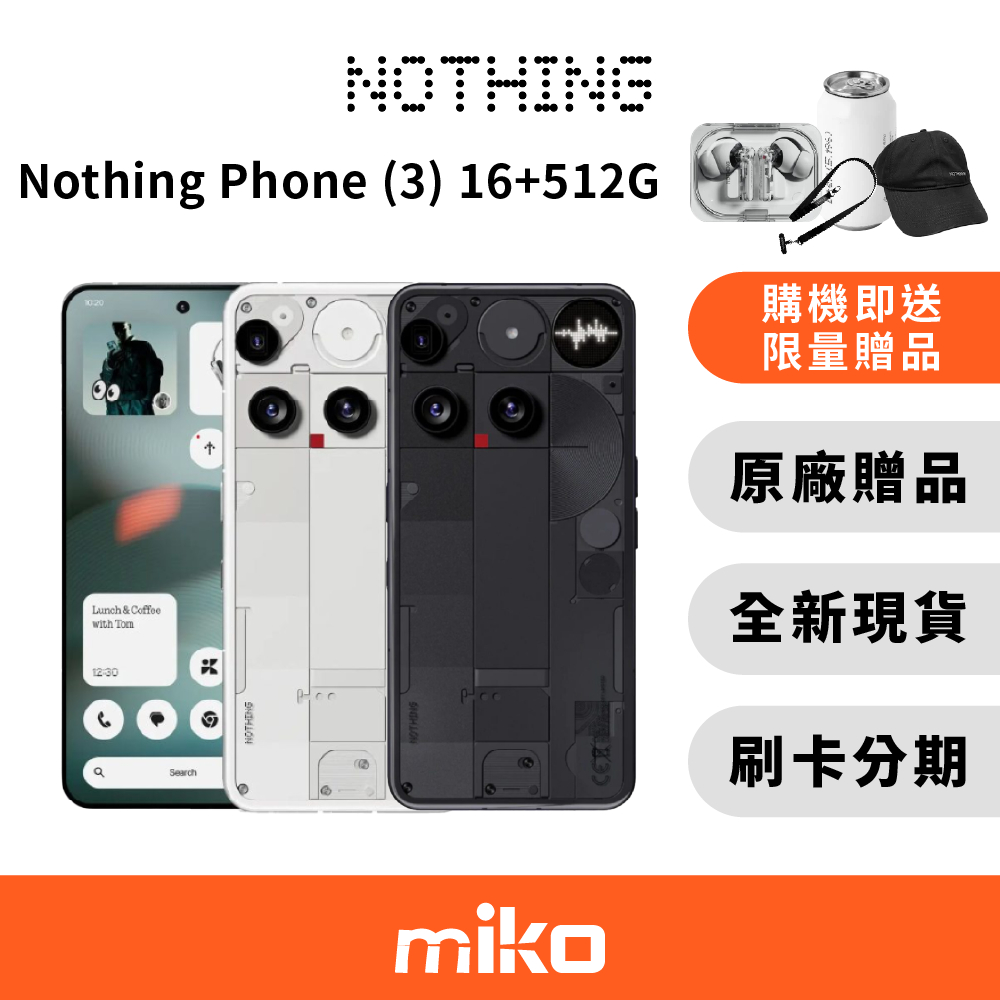 Nothing Phone (3) 16G+512G 贈$6000 (Ear(a)+原廠真空杯+原廠棒球帽+原廠掛繩)白 (限量贈品)|黑 (限量贈品)|勿下單此項,僅查看10%蝦幣回饋同等金額|白 (無贈品)|黑 (無贈品)miko 米可|手機門號配件專賣