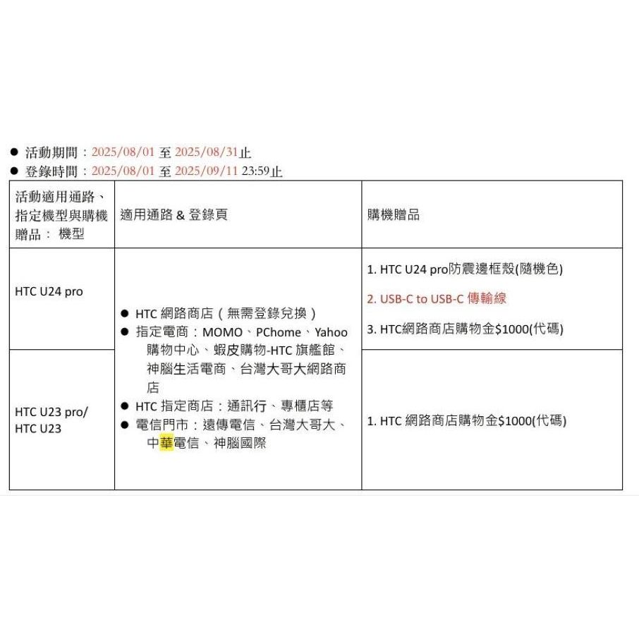HTC 享好禮三重送 U24 Pro 12G+512G 台灣原廠公司貨 全新未拆 快速出貨勿下單此項,僅查看10%蝦幣回饋同等金額|暮光白|太空藍miko 米可|手機門號配件專賣