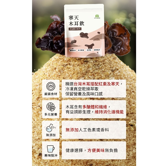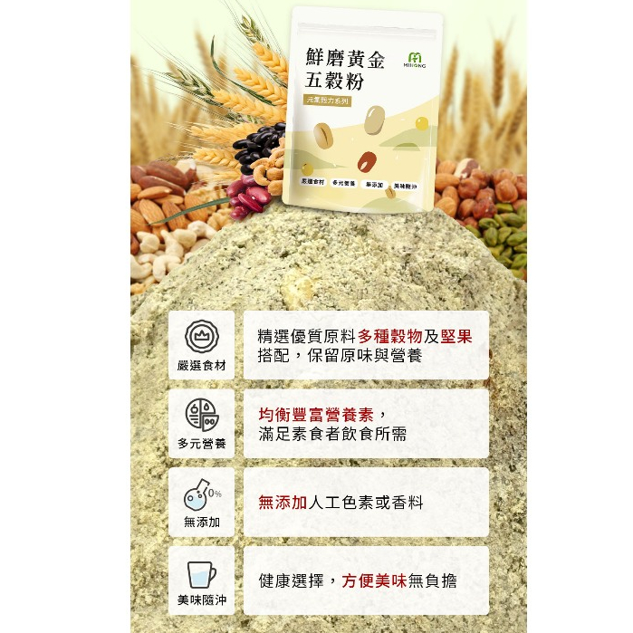 MIHONG®元氣穀力系列 (五穀粉/豆漿粉/芝麻粉/寒天木耳飲/奇亞籽)鮮磨黃金五穀粉|鮮磨黃金豆漿粉|鮮磨黃金黑芝麻粉|寒天木耳飲|純淨奇亞籽Cereal, Granola & OatsMIHONG® 米鴻生醫