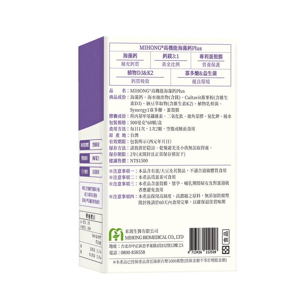 MIHONG米鴻生醫 高機能海藻鈣Plus(60顆/盒)一盒 品牌會員兌換賣場請勿直接下單高機能海藻鈣x1盒 ✅加數量更優惠✅Well BeingMIHONG® 米鴻生醫