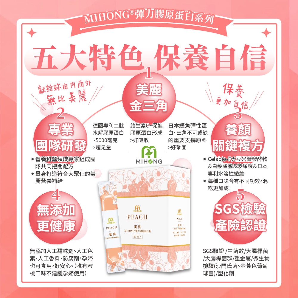 MIHONG 彈力膠原蛋白粉系列 囤貨組彈力膠原蜜桃 3盒|彈力膠原優格 3盒|彈力膠原莓果 3盒|彈力膠原蔬果 3盒Beauty SupplementsMIHONG® 米鴻生醫