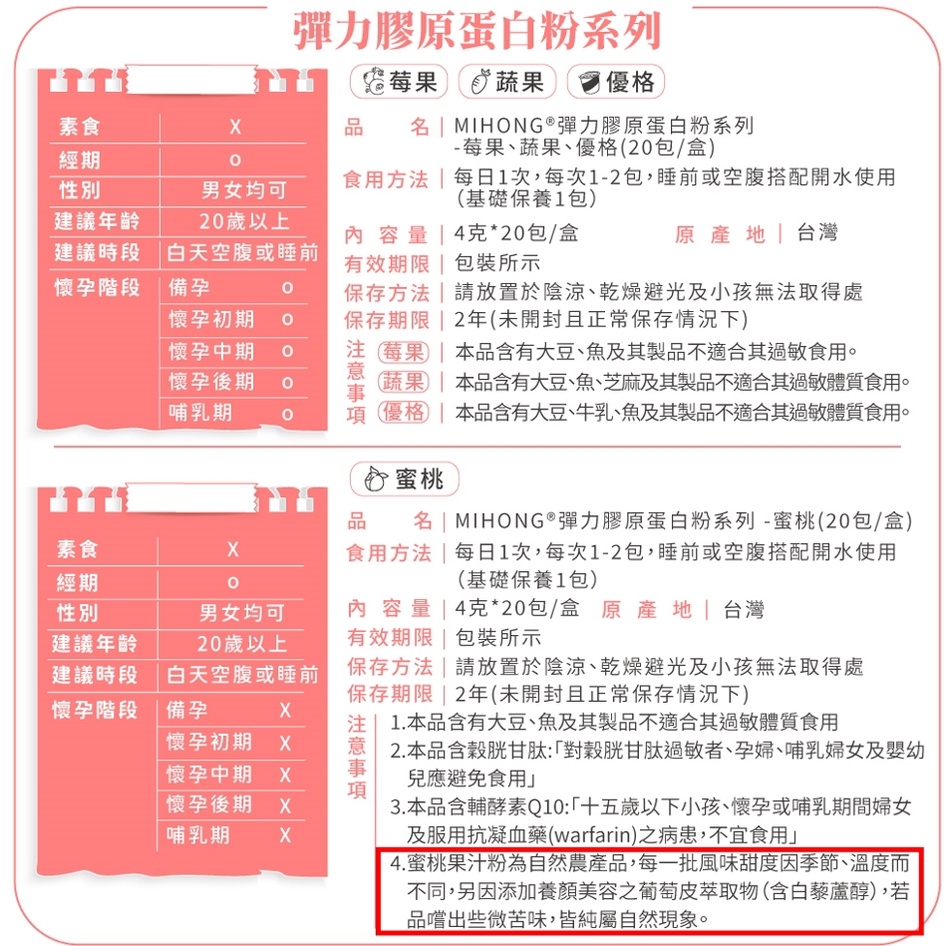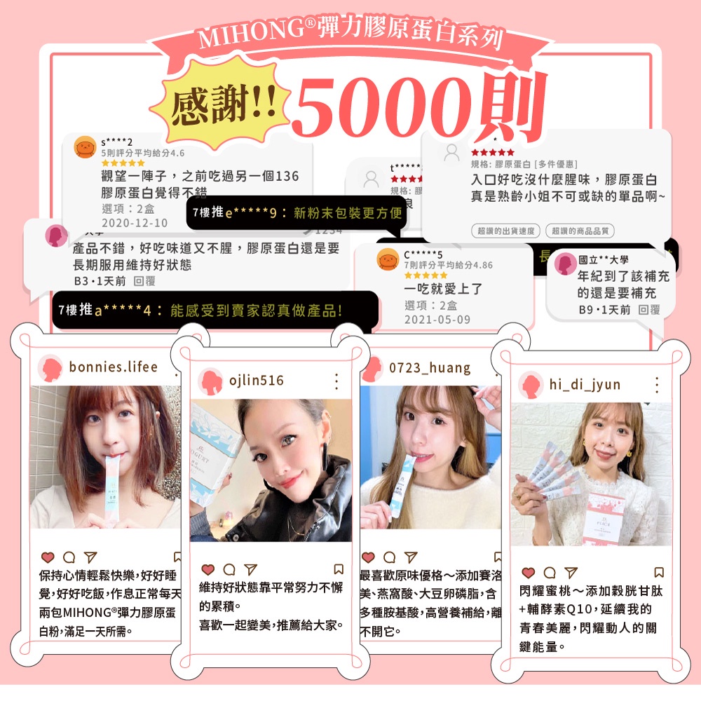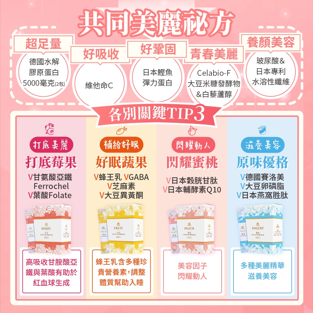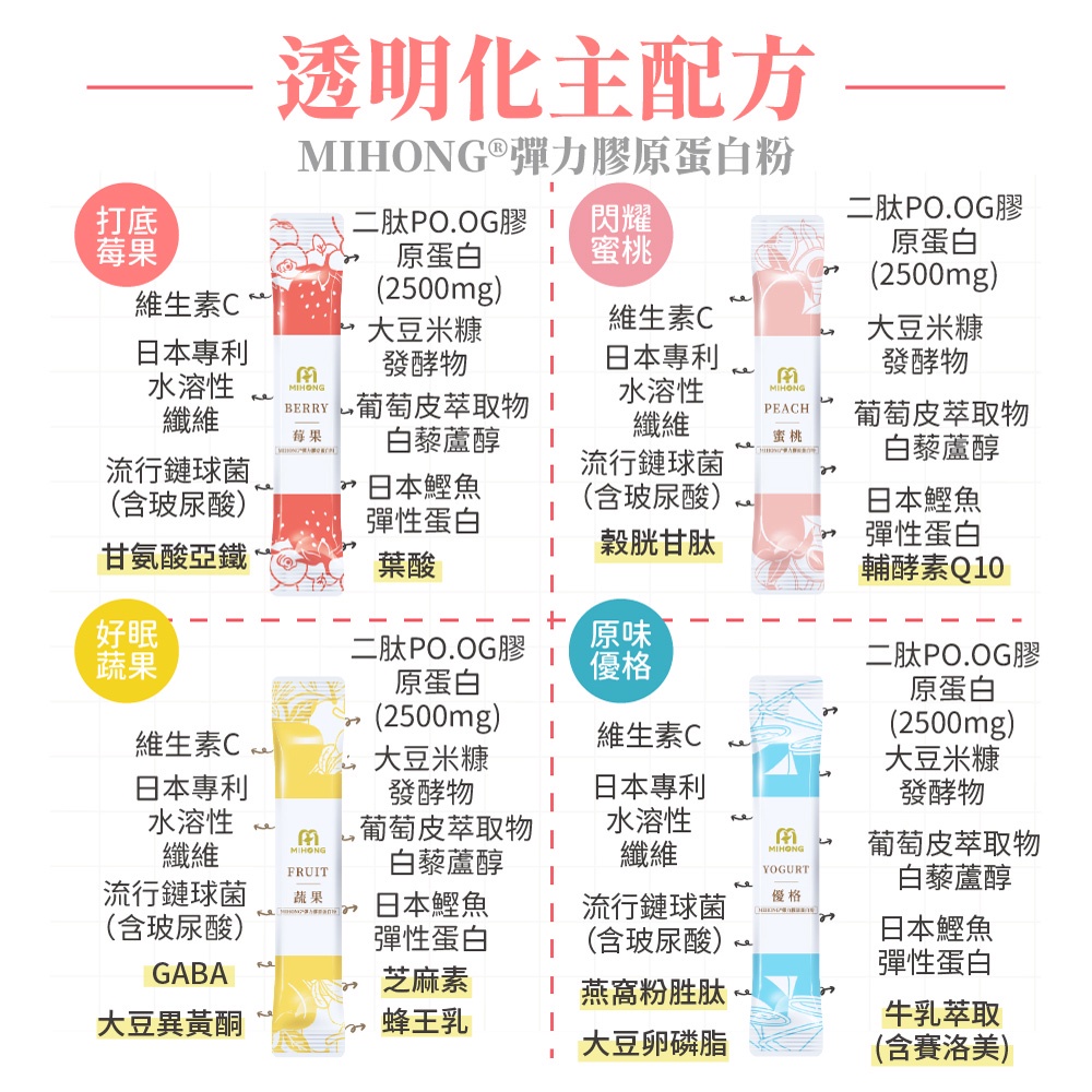 MIHONG米鴻生醫 彈力 膠原蛋白粉 膠原蛋白 維他命c 玻尿酸 葉酸 q10 鐵 白藜蘆醇 穀胱甘肽 GABA 現貨彈力膠原蛋白-莓果x1盒(20包/盒)|彈力膠原蛋白-蔬果x1盒(20包/盒)|彈力膠原蛋白-蜜桃x1盒(20包/盒)|彈力膠原蛋白-優格x1盒(20包/盒)Beauty SupplementsMIHONG® 米鴻生醫