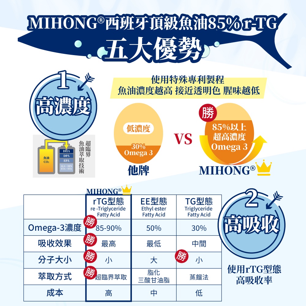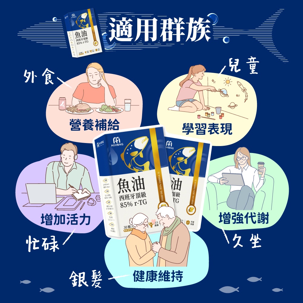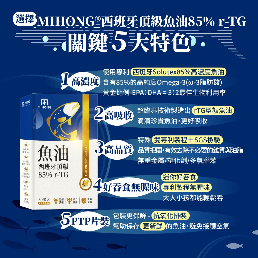 MIHONG米鴻生醫西班牙頂級魚油85% r-TG(30顆)西班牙頂級魚油85% r-TG(30顆)Well BeingMIHONG® 米鴻生醫