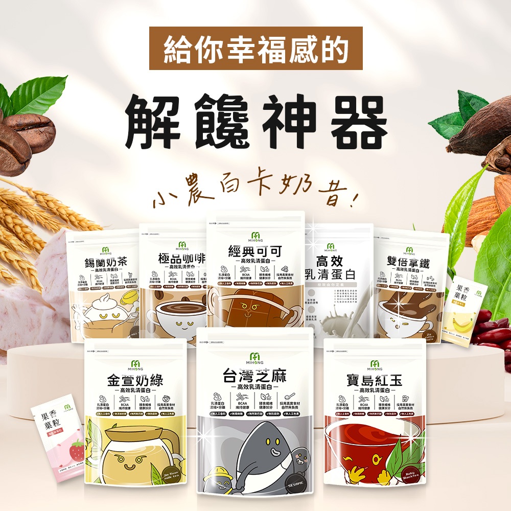 MIHONG米鴻生醫 高效乳清蛋白 (500g) 美味百卡小農奶昔CFS① 經典原味(純淨系)|② 台灣芝麻(小農系)|③ 台灣芋頭(小農系)|④ 紫米紅豆(小農系)|⑤ 清香杏仁(小農系)|⑥ 錫蘭奶茶(奶茶系)|⑦ 金萱奶綠(奶茶系)|⑧ 烏龍奶茶(奶茶系)|⑨ 黑糖奶茶(奶茶系)|⑩ 香純牛奶(奶茶系)|⑪ 鮮綠抹茶(奶茶系)|⑫ 經典可可(職人系)|⑬ 麥芽可可(職人系)|⑭ 雙倍拿鐵(職人系)|⑮ 極品咖啡(職人系)|⑯ 純素芝麻(純素系)|⑰ 醇濃豆漿(純素系)|⑱ 清淡芝麻(清淡系)|⑲ 清淡錫蘭(清淡系)|㉑寶島紅玉(奶茶系)|㉒焙鐵觀音(純素系)|㉓穀香糙米(純素系)|㉔濃奶黑豆(純素系)|⑳清淡可可(清淡系)|㉕清淡雙倍拿鐵(清淡系)|㉖清淡金萱奶綠(清淡系)|㉗清淡寶島紅玉(清淡系)|㉘清淡鮮綠抹茶(清淡系)|㉙清淡極品咖啡(清淡系)|㉚清淡紫米紅豆(清淡系)|㉛十全優豆(純素系)|㉜田園三豆(純素系)|㉝燕麥原味(純素系)Powdered Drink MixesMIHONG® 米鴻生醫